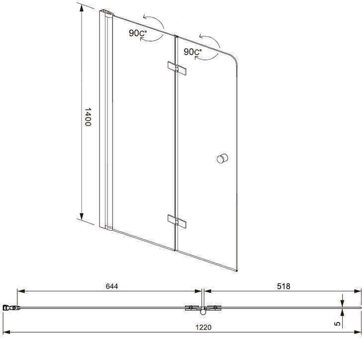 Шторка для ванны Aquanet Beta 4 NF6222-hinge выполнена из ударопрочного прозрачного стекла. Подходит для прямых ванн. Эта легкая конструкция шириной 1220 мм, в которой 644 мм занимает поворачивающаяся на 90° к стене часть, и 518 мм - дверца, поворачивающаяся также на 90°, Как первая, так и вторая створки открываются в обе стороны во всех положениях. Конструкция оборудована современным механизмом открывания распашной дверцы, что гарантирует удобство и надежность использования. Поверхность стекла обработана невидимым невооруженным глазом полимерным защитным слоем EasyClean, который препятствует образованию подтеков и надолго оставляет шторку чистой, к тому же, облегчает приведение стеклянной поверхности в порядок. Крепится шторка к стене. Ее можно установить как с левым, так и с правым открыванием дверей.
