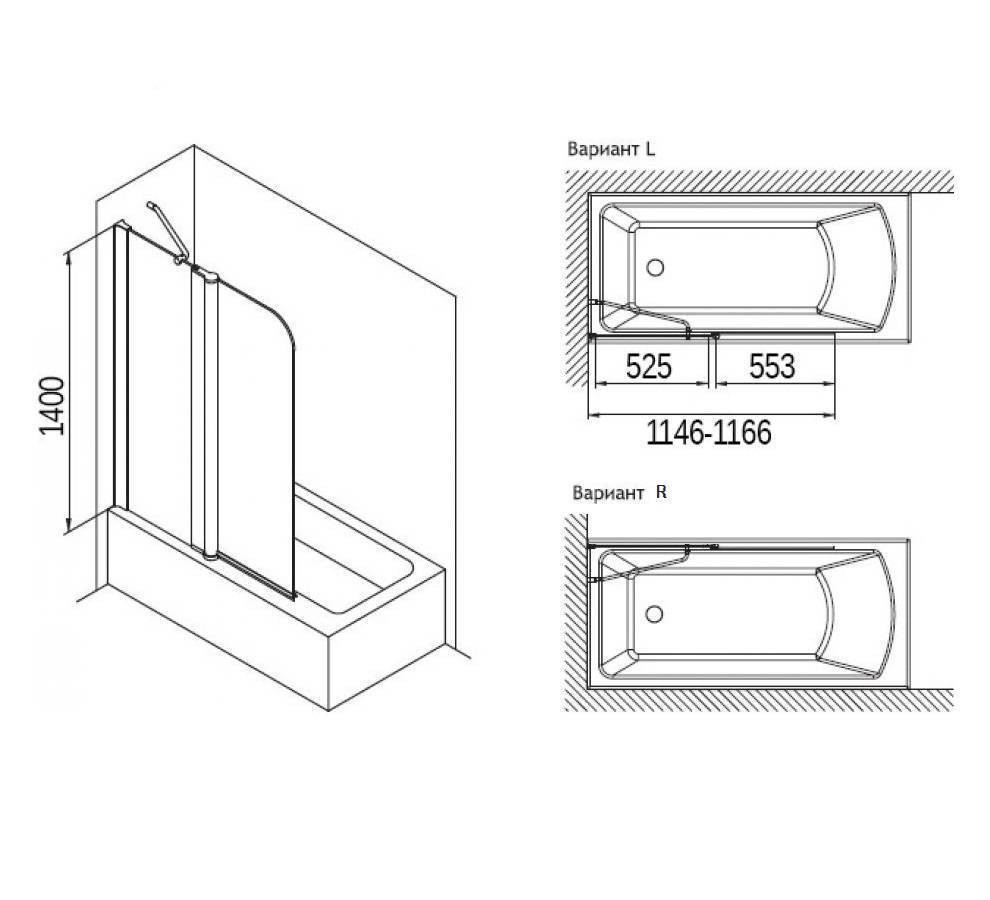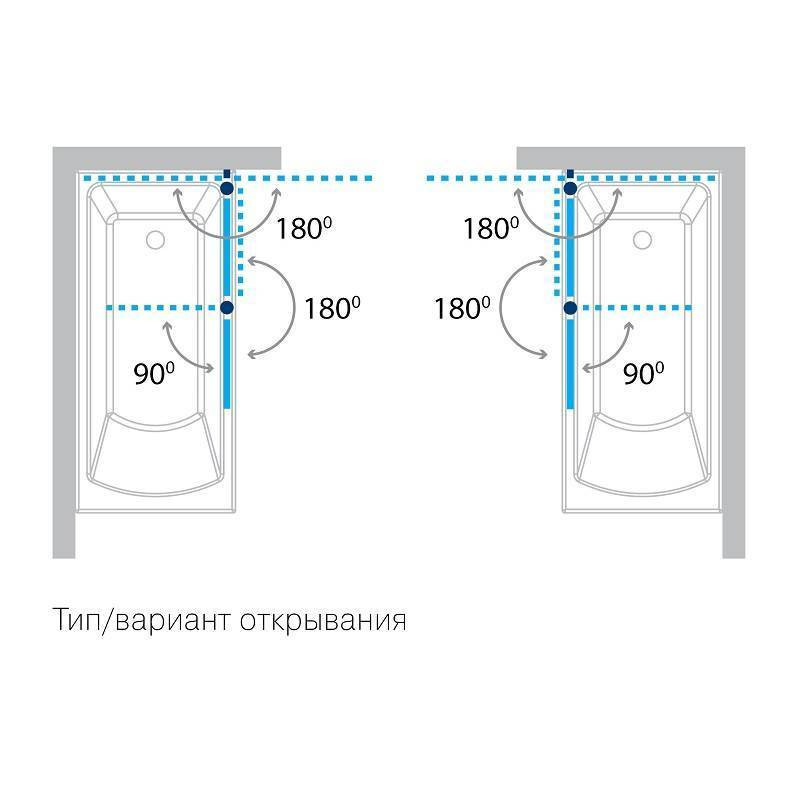 Шторка для ванны Koller Pool двухэлементная Waterfall Line QP 95 Left 1150x1400 прозрачная Transparent 6мм CALC FREE хром