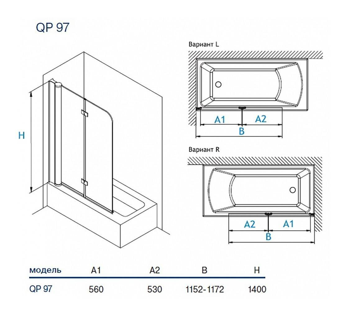Шторка для ванны Koller Pool двухэлементная Waterfall Line QP 95 Right 1150x1400 не прозрачная Grape 6мм хром