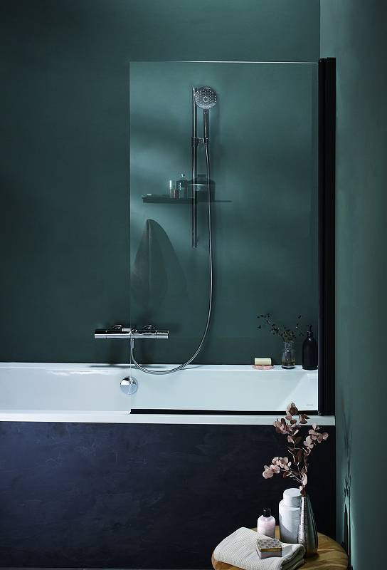 Шторка на ванну Jacob Delafon Struktura 80х140 E6D042-BL профиль Черный стекло прозрачное