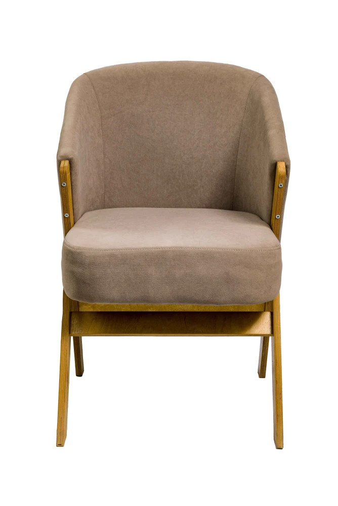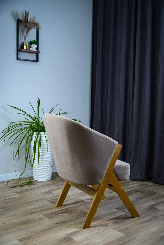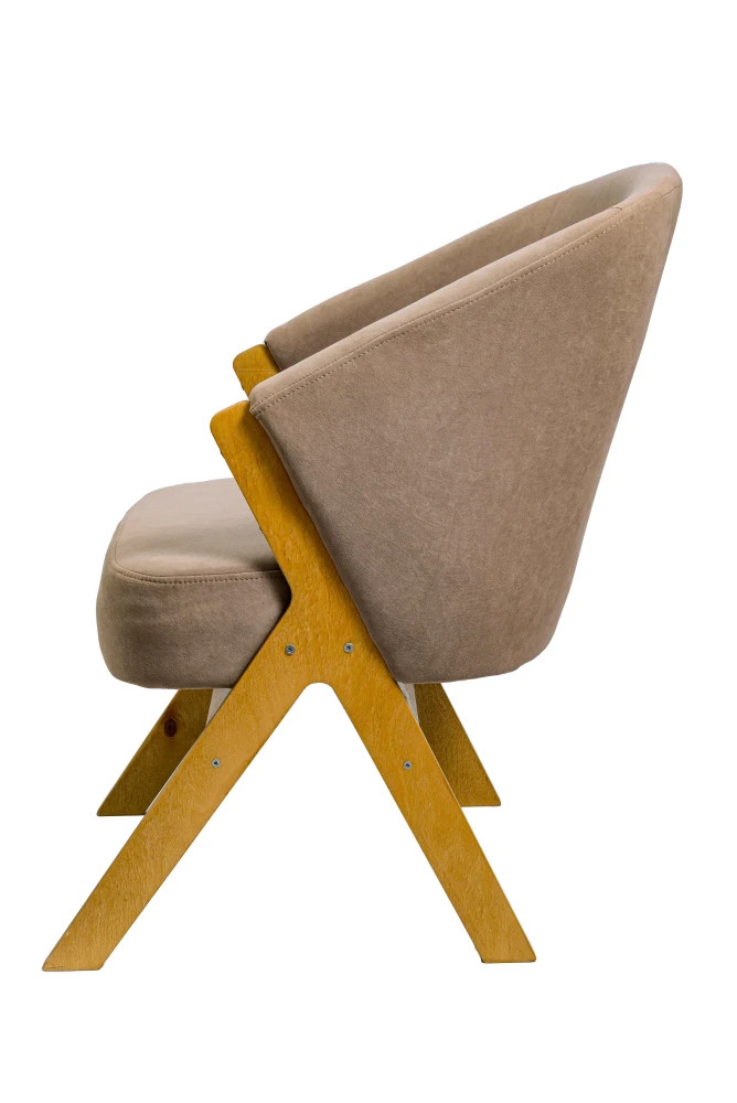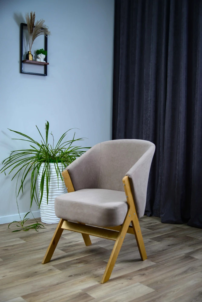Лофт — это универсальное стул-кресло с объёмной посадкой и выраженным характером. Модель выполнена из прочной берёзовой фанеры толщиной 18 мм, благодаря чему она сочетает надёжность, стабильность и лёгкость в восприятии. Обивка в спокойном нейтральном тоне подчеркивает мягкие формы сиденья и спинки, создавая ощущение уюта.
