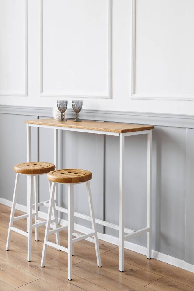 В зависимости от высоты барного стола, вы можете выбрать полубарный (65 см) или барный (78 см) стул.