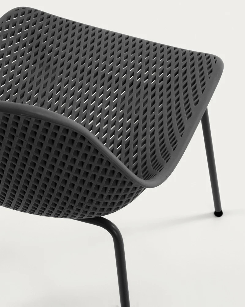 Стул конструкционно состоит их двух частей — это цельное сиденье и опора с ножками. Сиденье анатомической формы сделано из прочного переработанного пластика. Его толщина гарантирует стойкость к высоким весовым нагрузкам и эксплуатацию без потери первоначального внешнего вида. Сетчатая фактура выглядит современно, оригинально, а также несет практичный смысл — так с изделия проще удалить влагу, загрязнения. Опора металлическая, окрашена в тот же цвет, что и сиденье. Этот материал прочный, долговечный, способный выдерживать высокие нагрузки. Главная особенность этого стула — практичность и универсальность. Пластик не боится влаги, он уместен в любом современном интерьере, как дома, так и на работе. Поэтому изделие можно эксплуатировать в помещении или на улице, в офисе или гостиной, в кафе или на террасе.