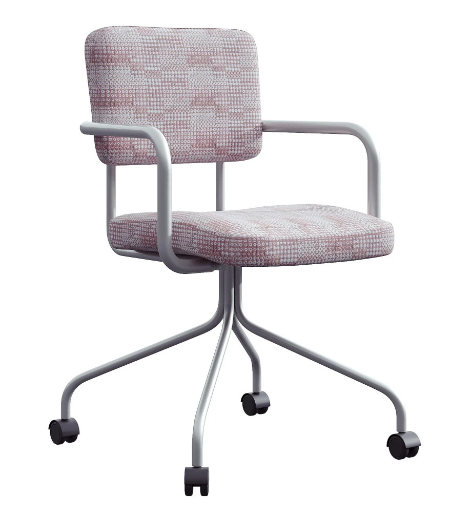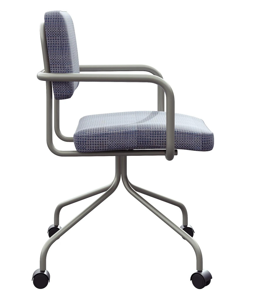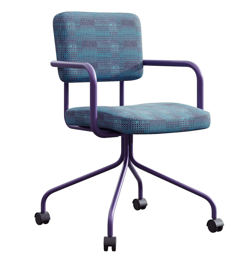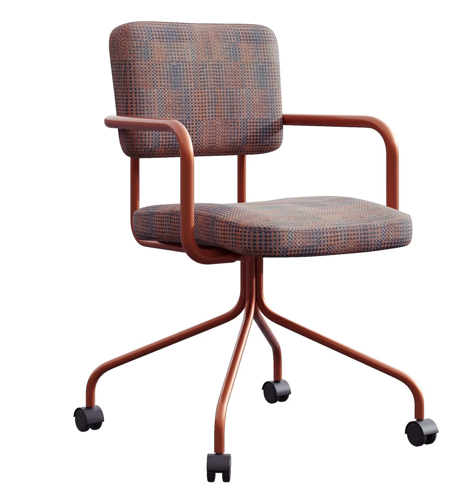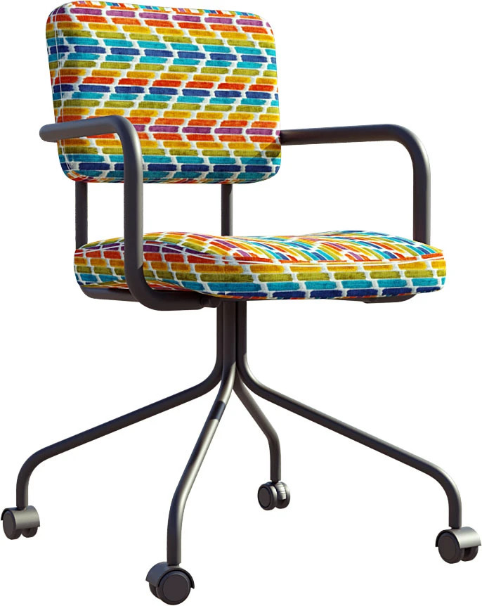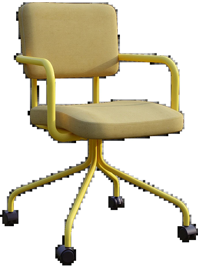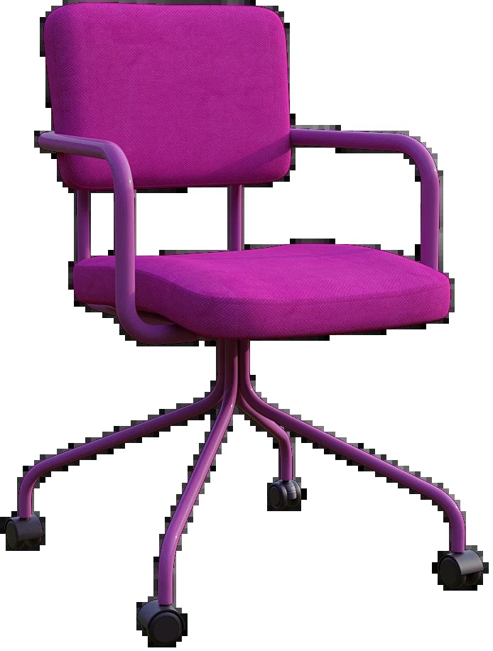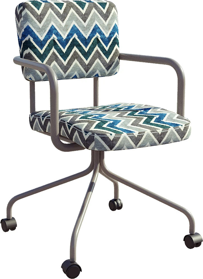 Кресло изготовлено для использования его в качестве кресла оператора, посетителя или рабочего кресла в домашних условиях.В основе металлокаркас, обшитый ппу и тканью, на колесиках. Металл окрашен. Яркий современный акцент, альтернатива пластиковым скучным офисным креслам.