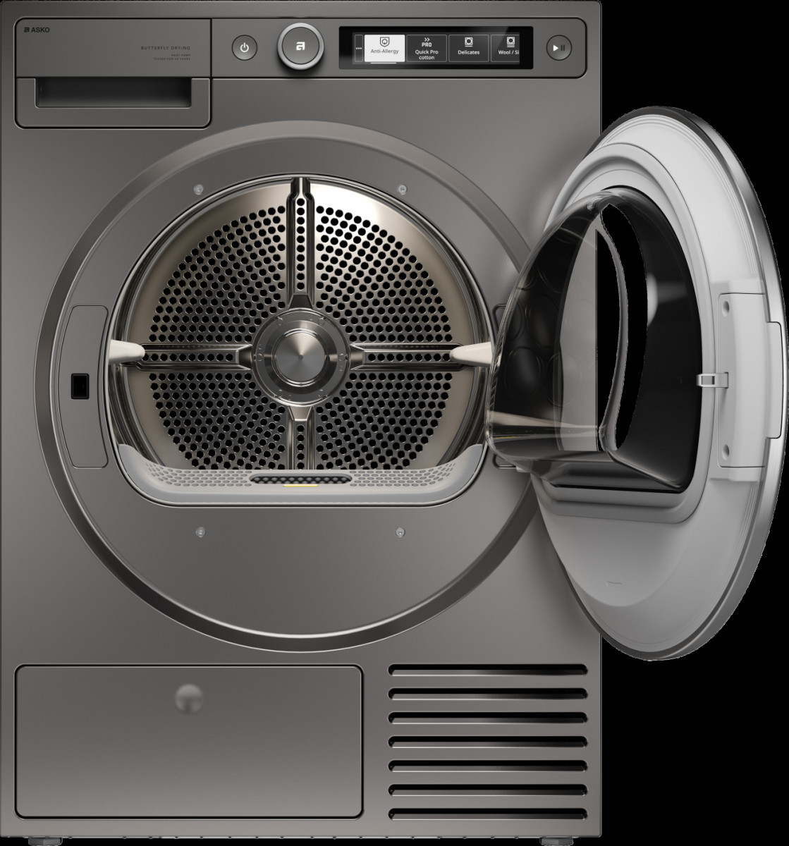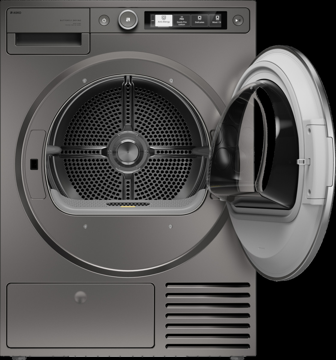 Инверторный двигатель и тепловой насос обеспечивают тихую, экономичную и деликатную сушку при классе энергоэффективности A+.