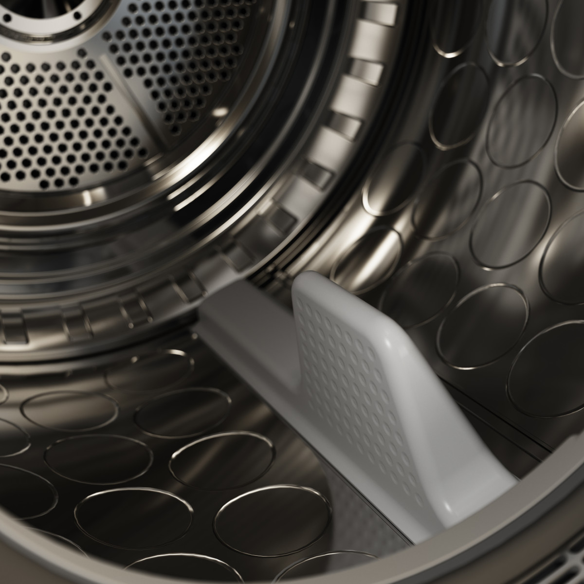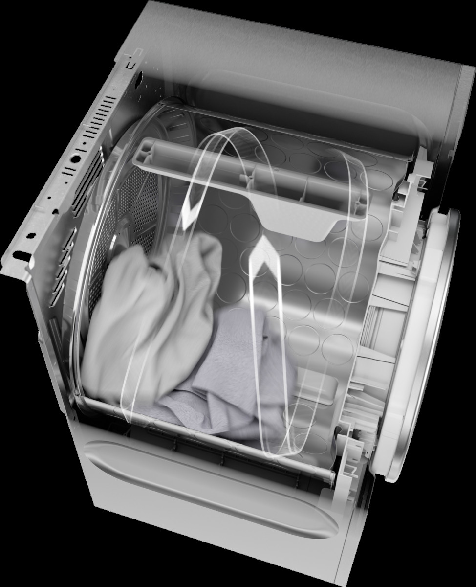 Поверхность барабана выполнена в виде каплевидных ячеек, расположенные в шахматном порядке по поверхности барабана, благодаря такой конструкции между бельем и металлической поверхностью образуется равномерная воздушная подушка, поэтому вещи менее подвержены трениям в процессе сушки. Ребра-активаторы аккуратно переворачивают вещи во время сушки, предотвращая скручивания и смятие тканей.