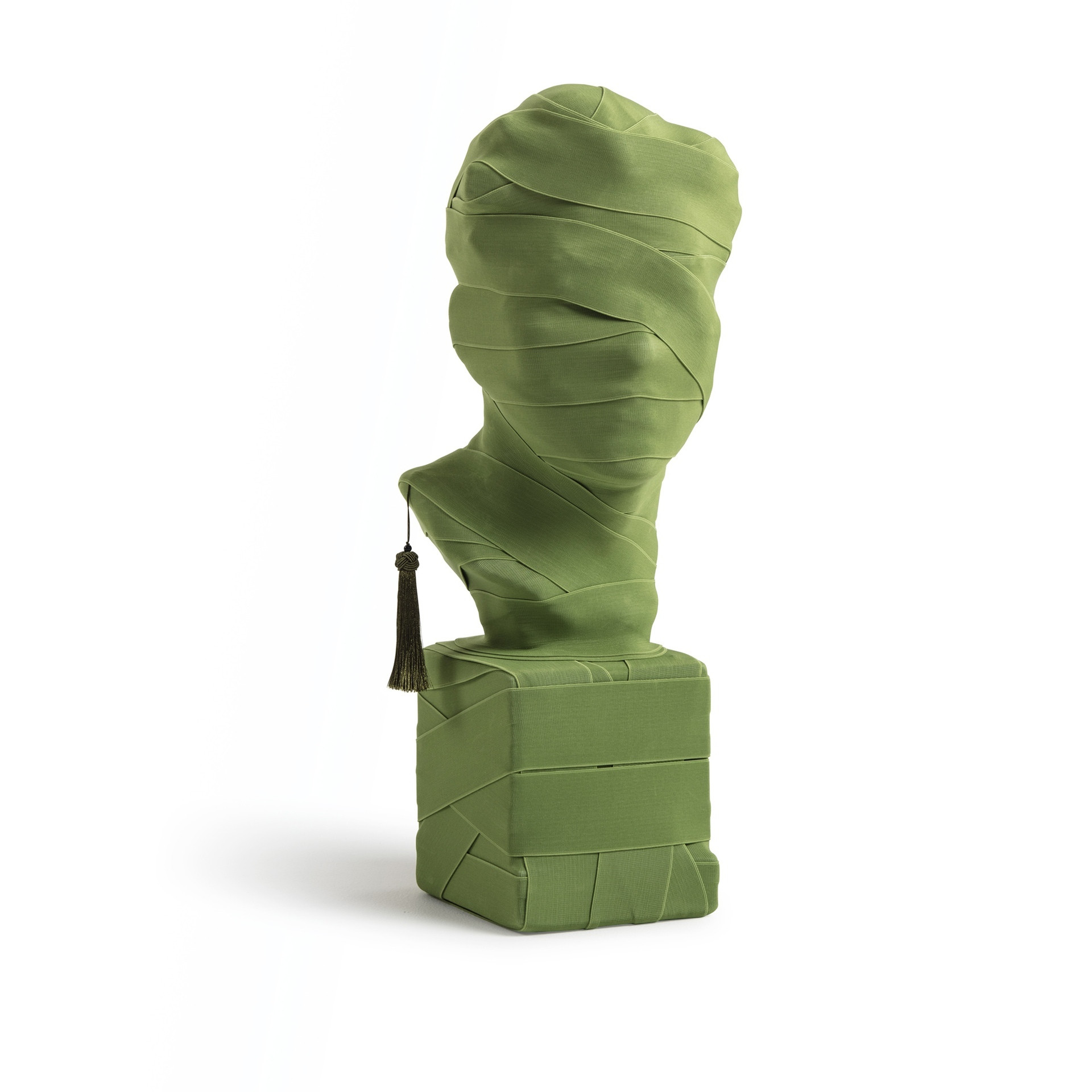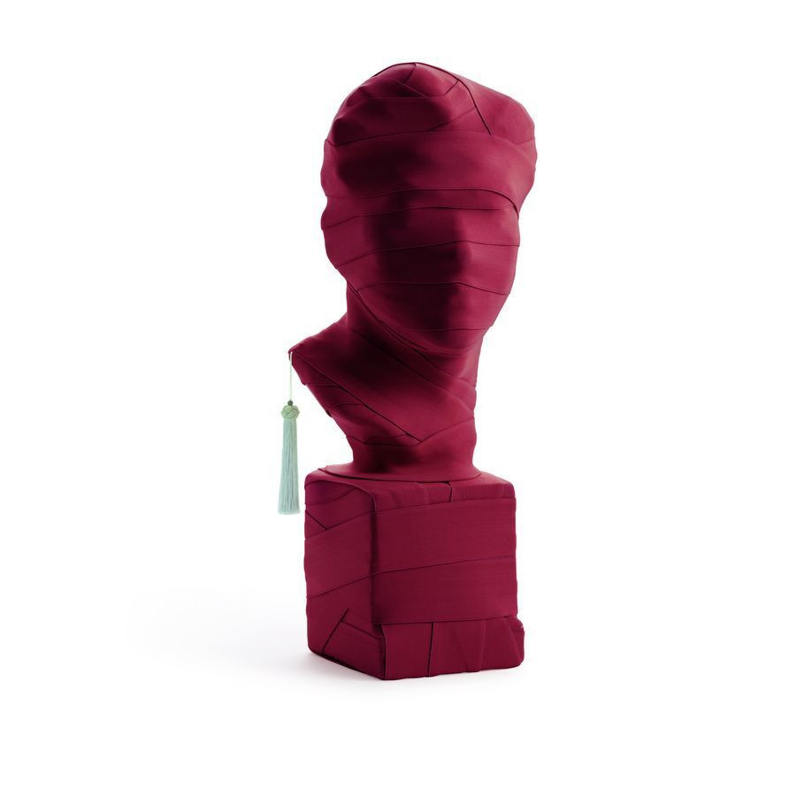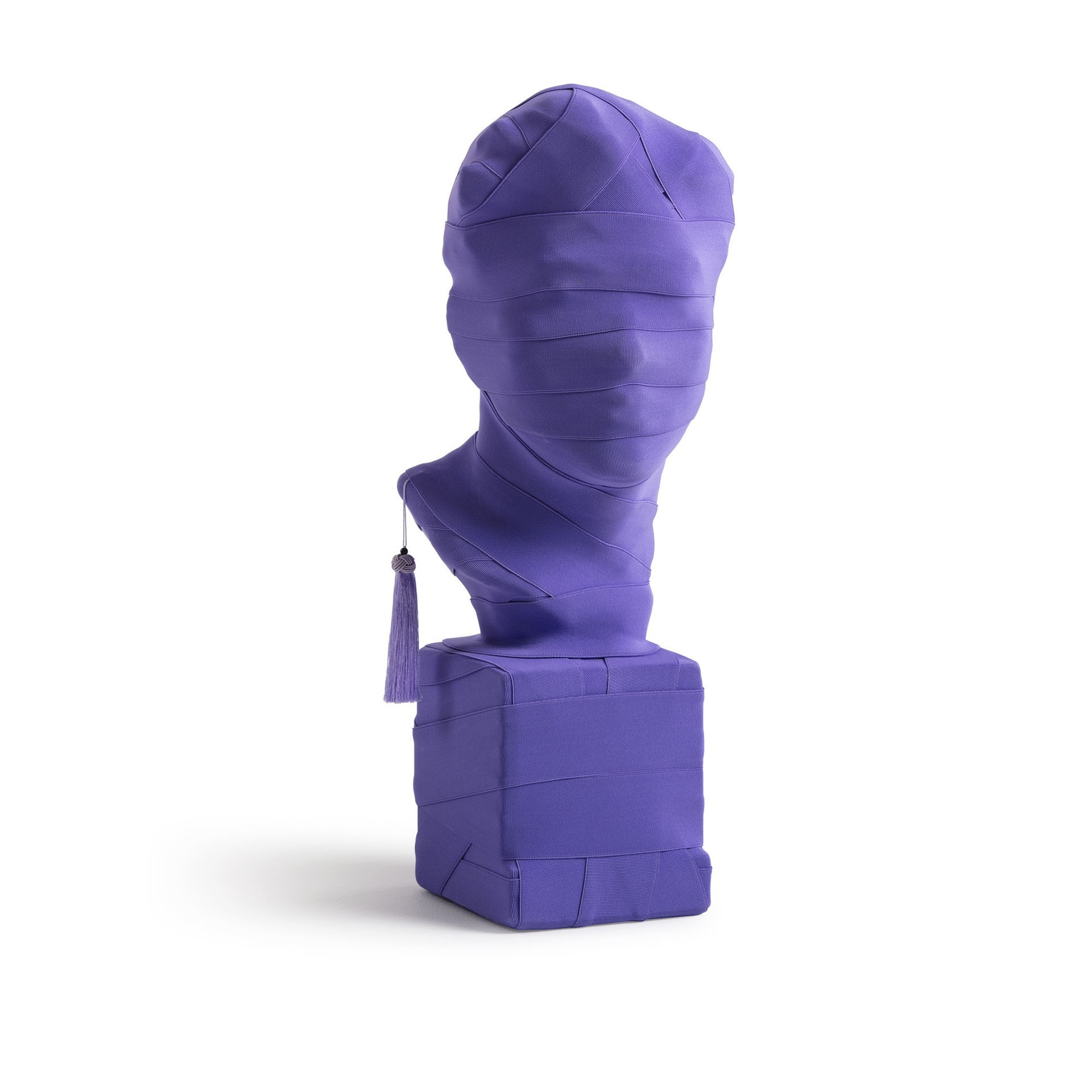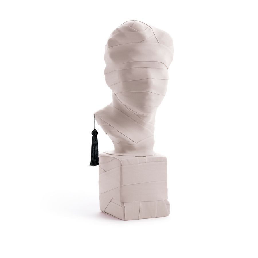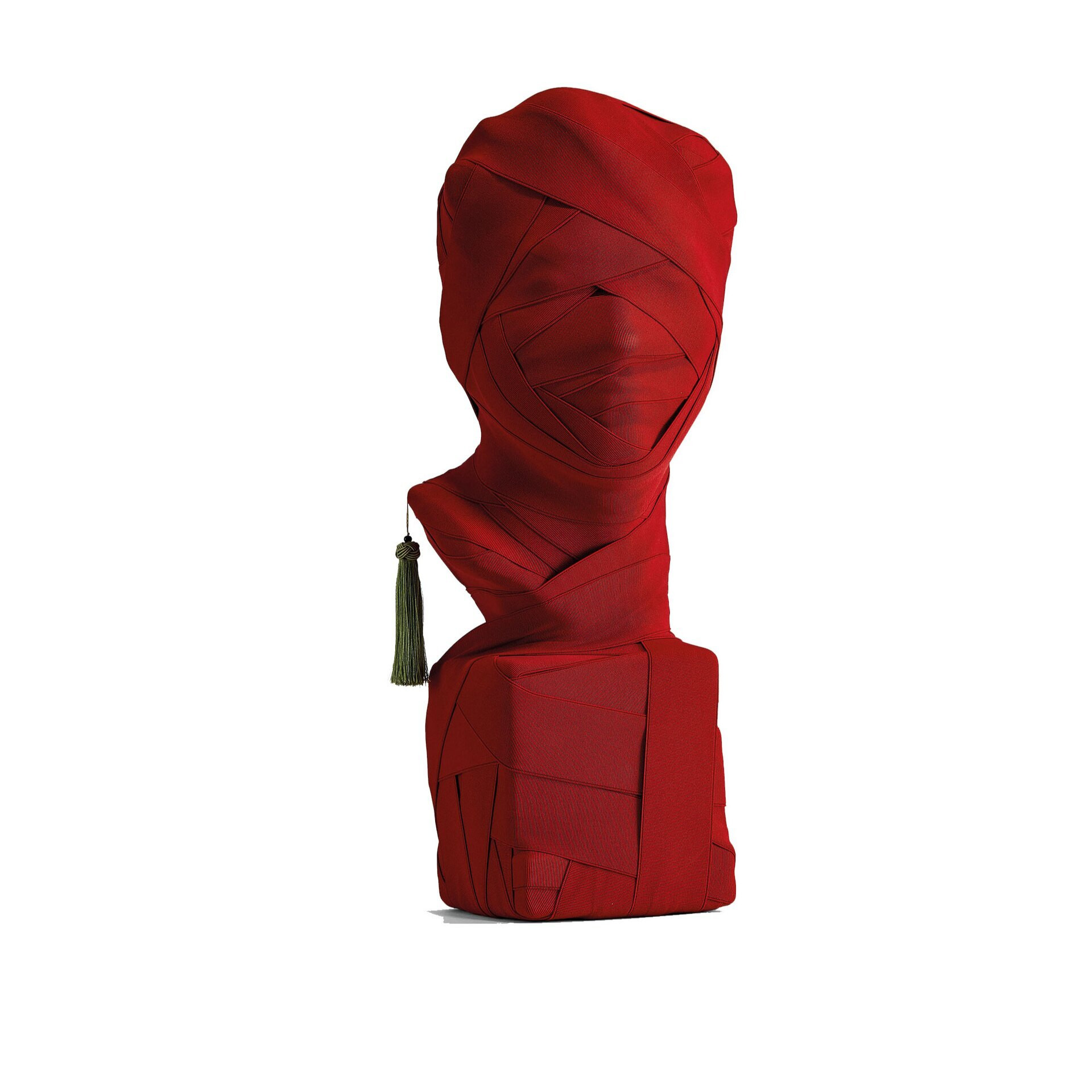 Эта скульптура бросает вызов классическим традициям, когда героев древности увековечивали в статуях. Лицо маскируется повязкой, создавая атмосферу тайны и переосмысливая понятие портрета. Акцентная кисточка добавляет восточный акцент, символизируя диалог между западным и азиатским искусством.