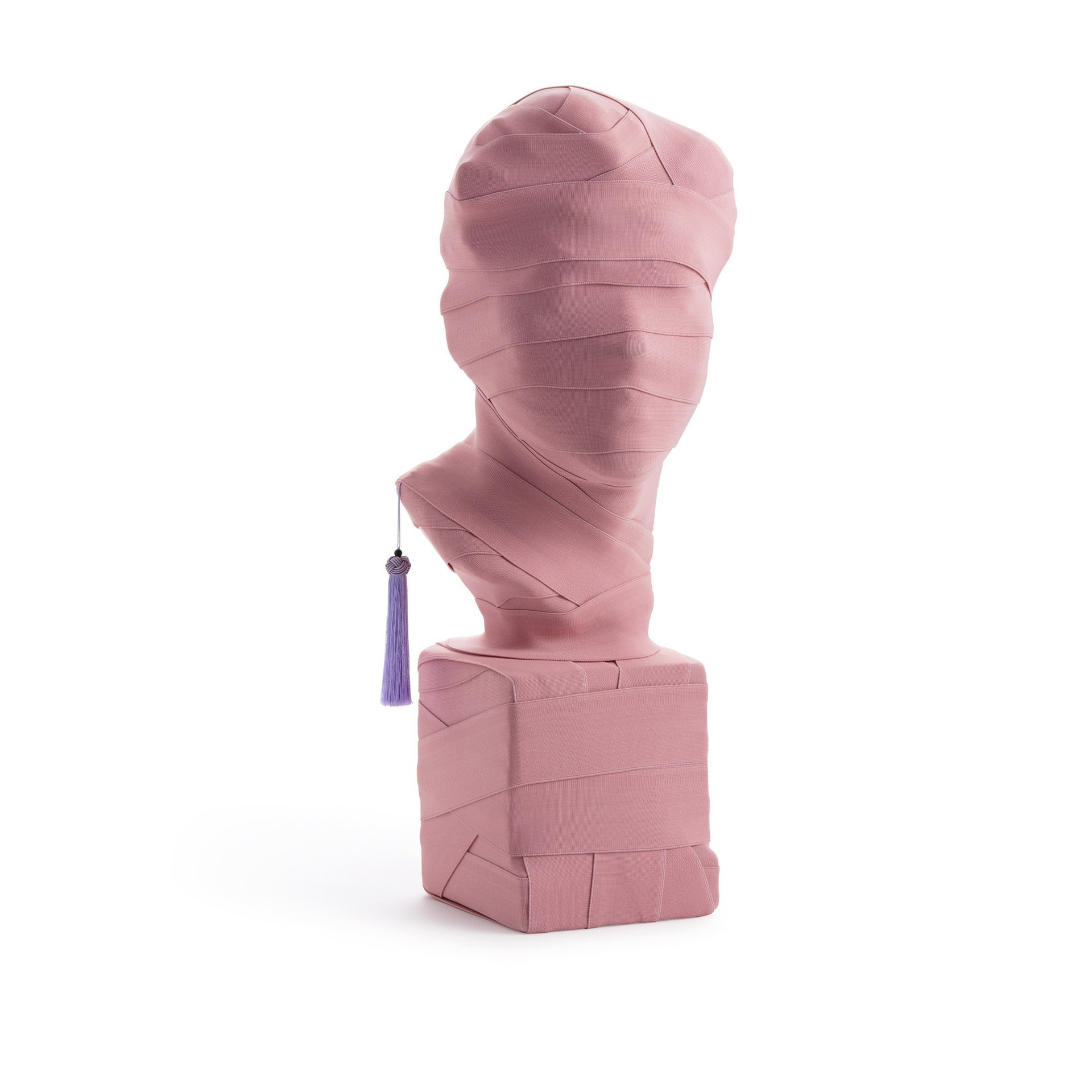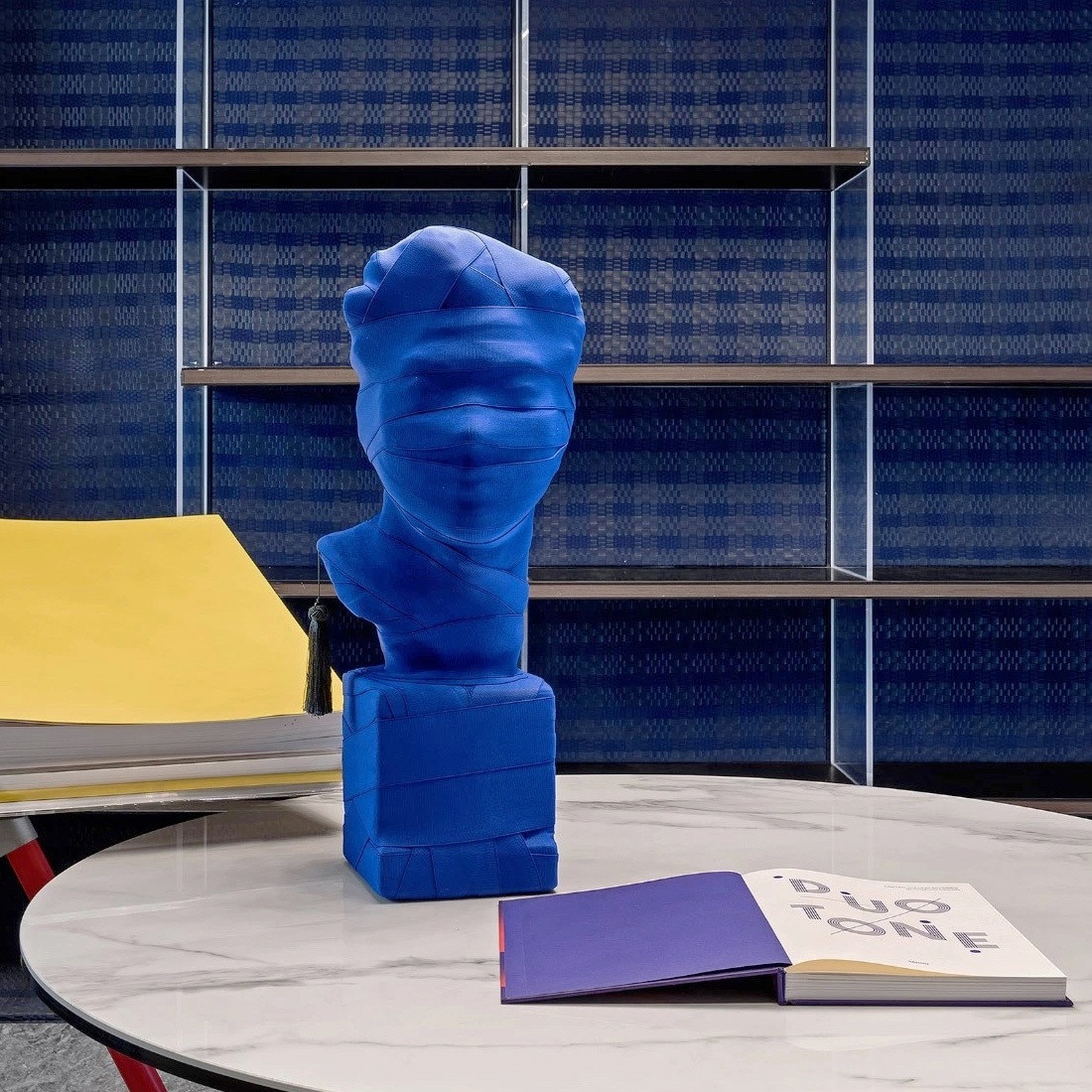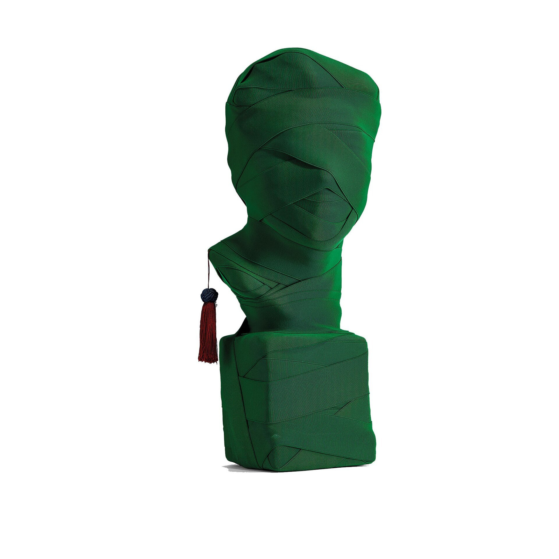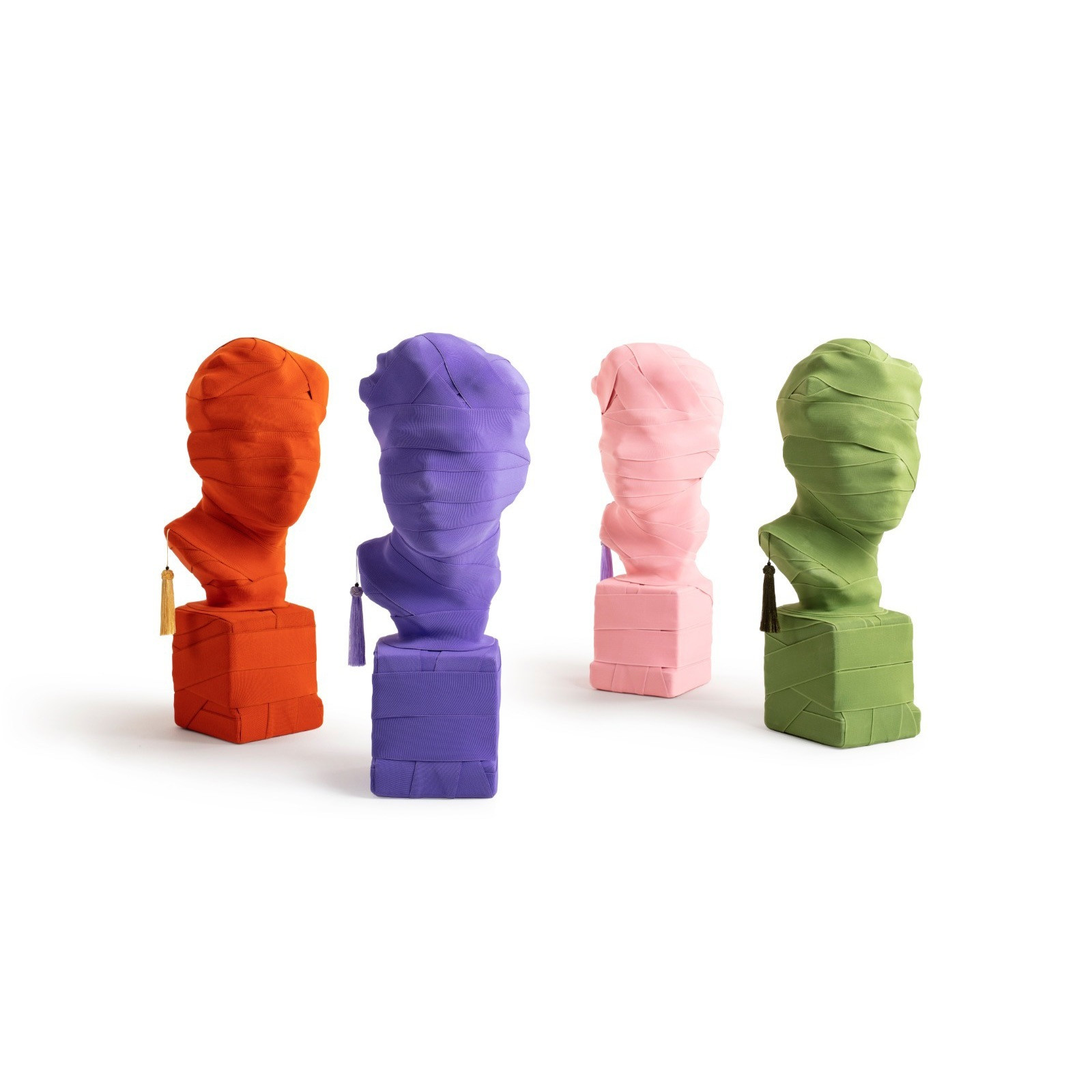 Эта скульптура бросает вызов классическим традициям, когда героев древности увековечивали в статуях. Лицо маскируется повязкой, создавая атмосферу тайны и переосмысливая понятие портрета. Акцентная кисточка добавляет восточный акцент, символизируя диалог между западным и азиатским искусством.
