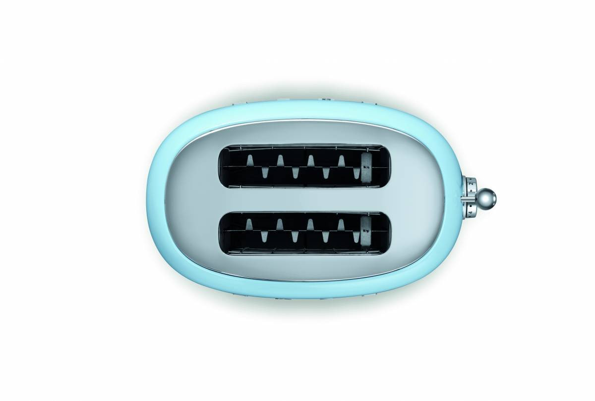 · Привлекательный внешний вид. Компания Smeg выпускает тостеры нежно-голубого цвета. Дизайн в стиле ретро подчеркнет индивидуальность вашей кухни. Хромированные конструктивные элементы гармонично дополняют внешний облик устройства. Благодаря привлекательному виду оборудование удобно располагать на открытых местах. Тостер отлично впишется в интерьер за счет изогнутых форм и эстетичного вида.