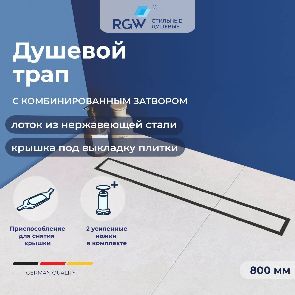 Трап для душа прямоугольный RGW SDR-08B 800 мм Черный 21210880-014