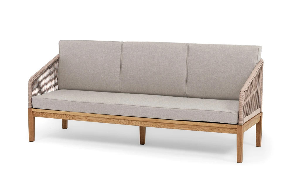 Трехместный диван «Канны» - отличный выбор для создания уютной атмосферы на террасе, в саду или на веранде. Выполнен из круглого роупа (эластичные ленты) в бежевом цвете, который придает ему роскошный вид.