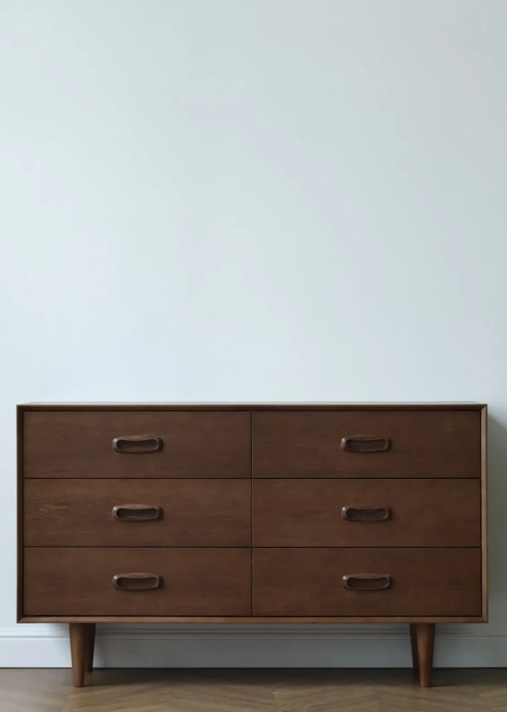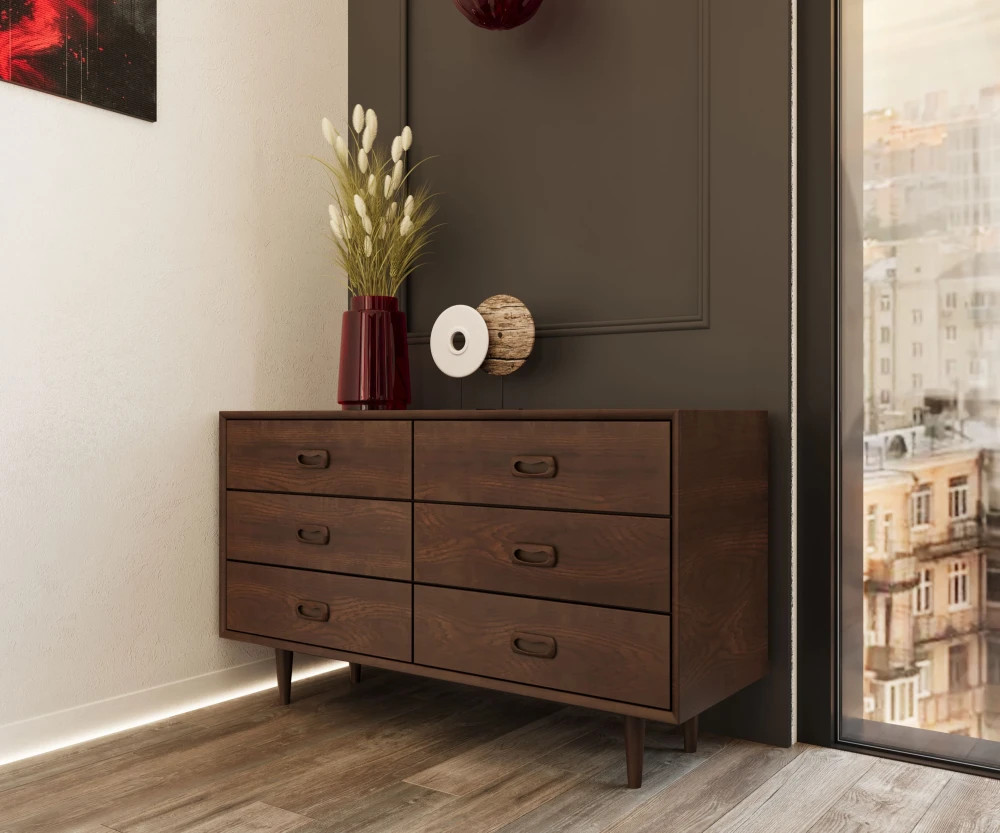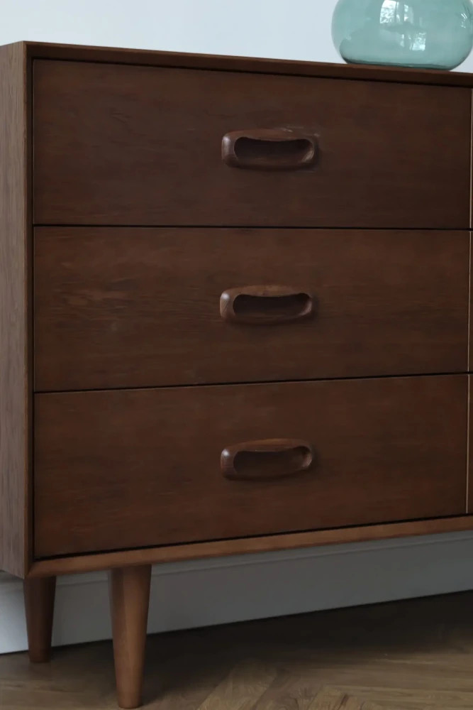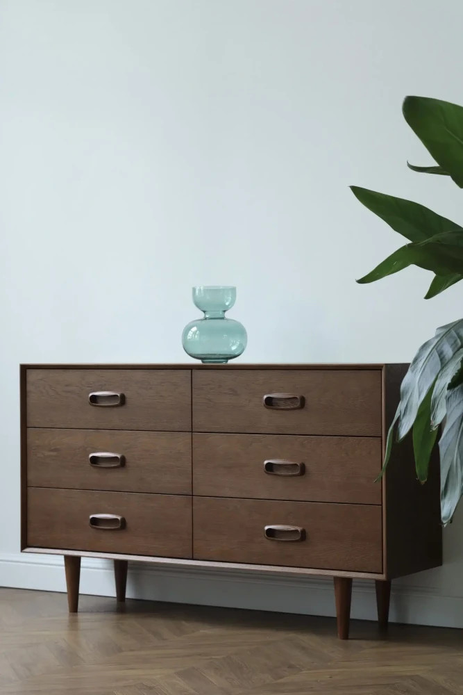Тумба из дуба по мотивам комодов Борге Могенсена.Красивая и вместительная, на традиционных конических ножках. Состоит из 6-ти ящиков со скрытыми доводчиками. Подобная тумба - отличное решение для спальни, детской комнаты или гардеробной. Дизайн делает её универсальной и практичной для любого интерьера.