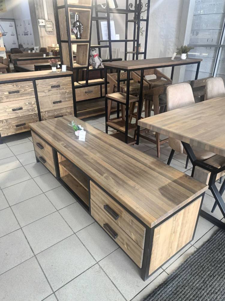 Массив сосны либо дуба, покрытый маслом (либо морилка) + лак. Каркас: металл 2 мм.