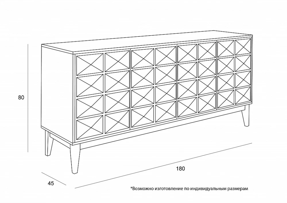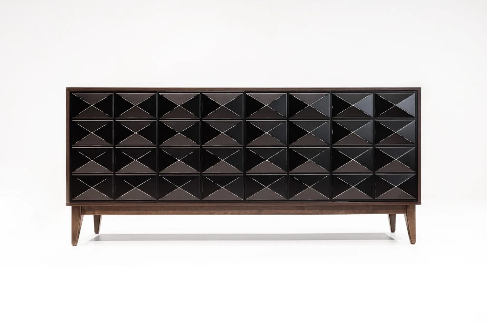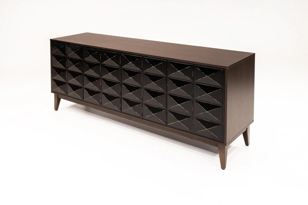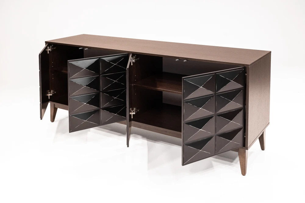 Тумба "Пирамида" — стильный и функциональный элемент интерьера. Дверки тумбы украшены выступающими пирамидками с гранями, обработанными патиной, что придает изделию уникальный и элегантный вид.