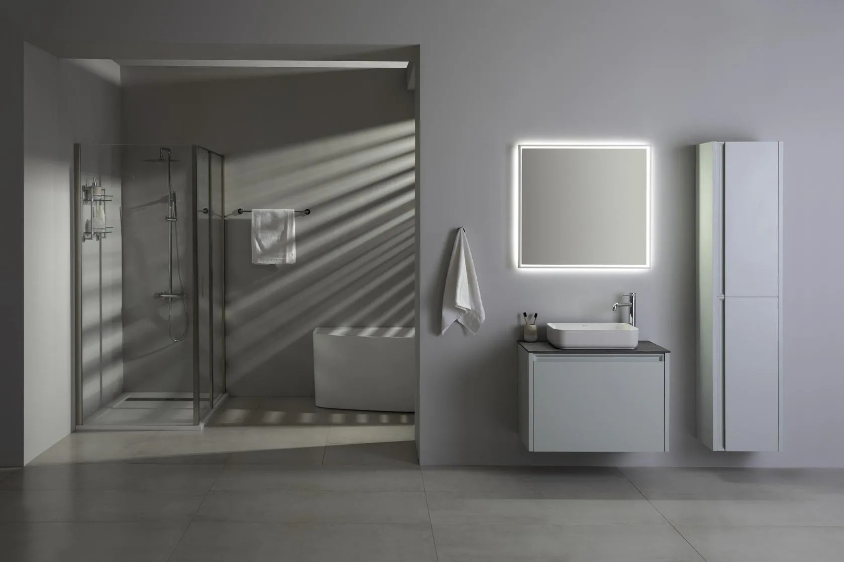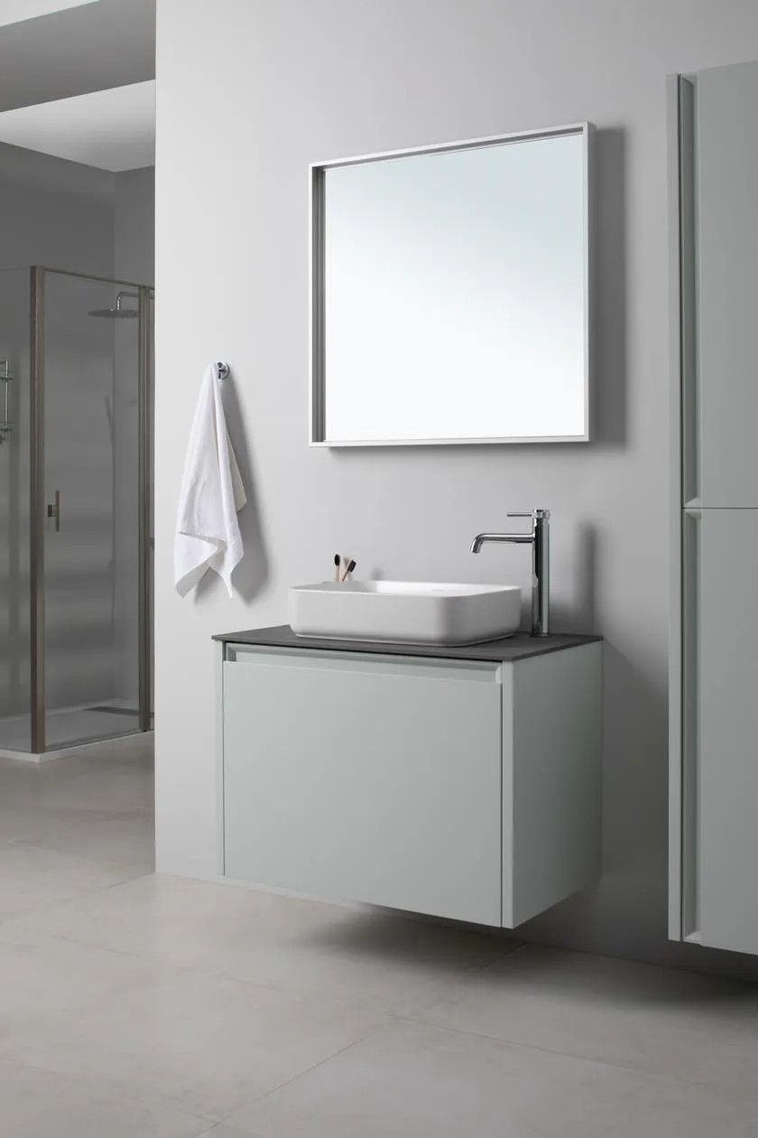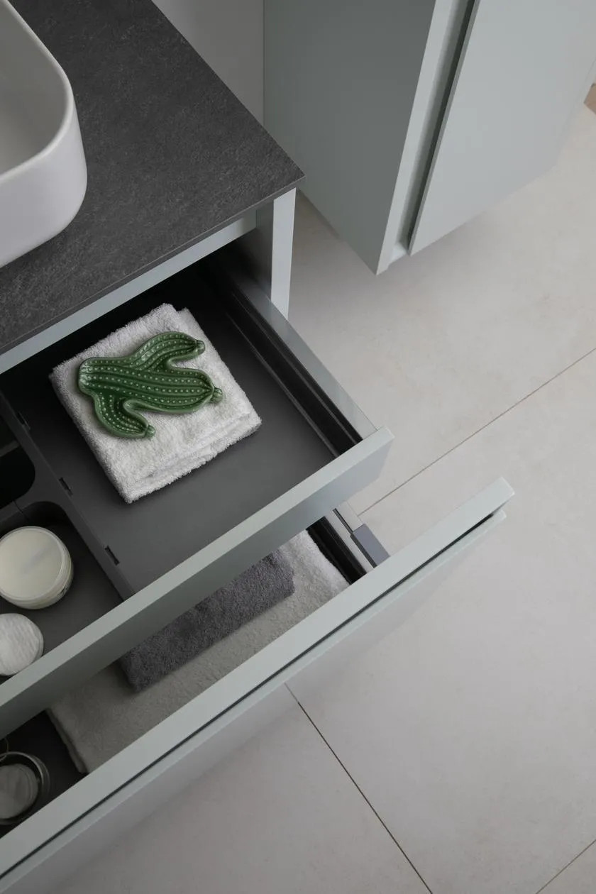 Тумбы оснащены специальной пластиковой рамой, которая надежно защищает вырез под сифон, служит органайзером и позволяет закрепить дополнительный набор контейнеров для хранения.