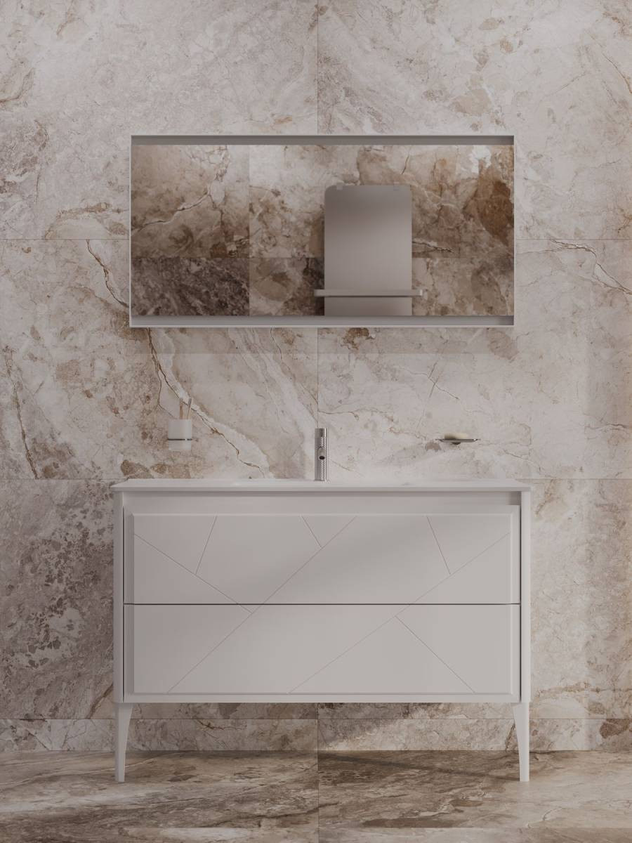 Корпус и фасады: выполнены из МДФ с матовой эмалью, что обеспечивает долговечность и устойчивость к влаге.