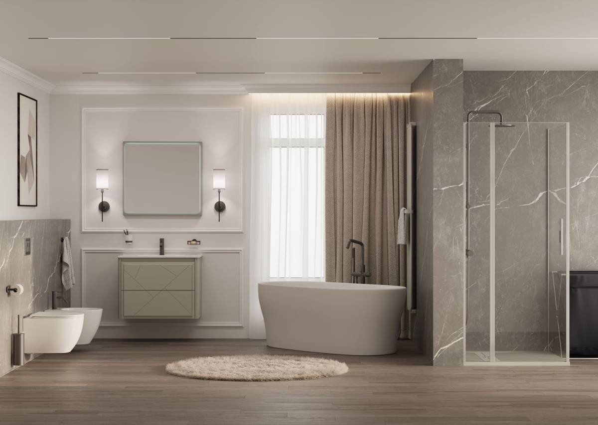 Гармония и спокойствие: мягкие формы и плавные линии создают ощущение уюта и комфорта в ванной комнате.