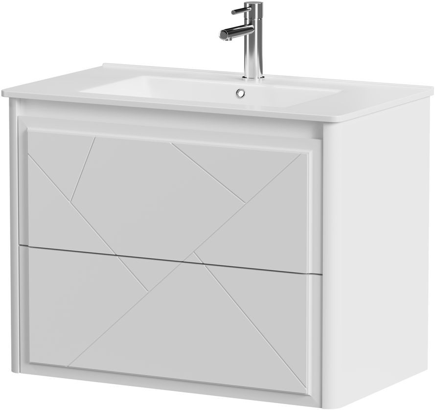Корпус и фасады: выполнены из МДФ с матовой эмалью, что обеспечивает долговечность и устойчивость к влаге.