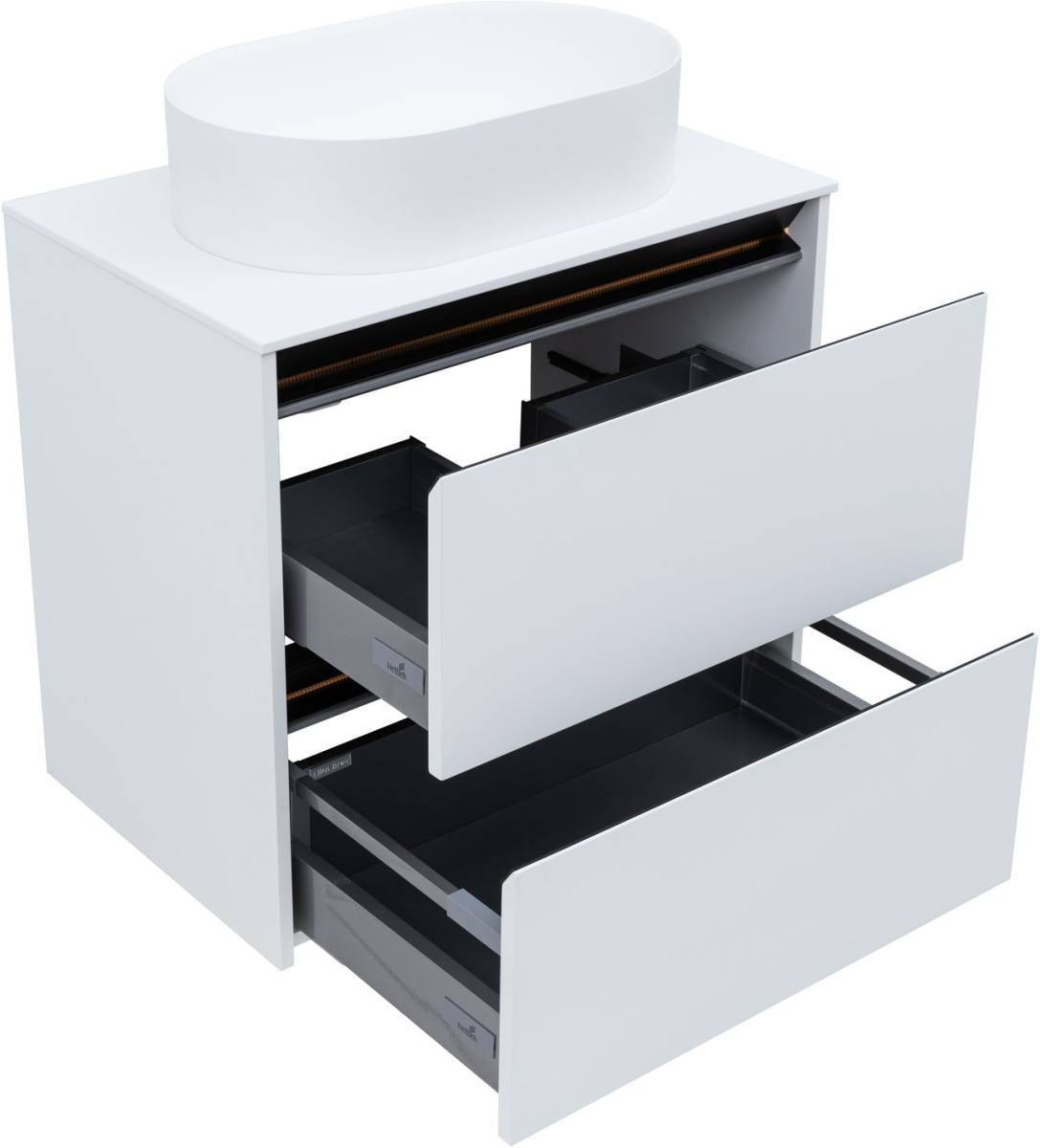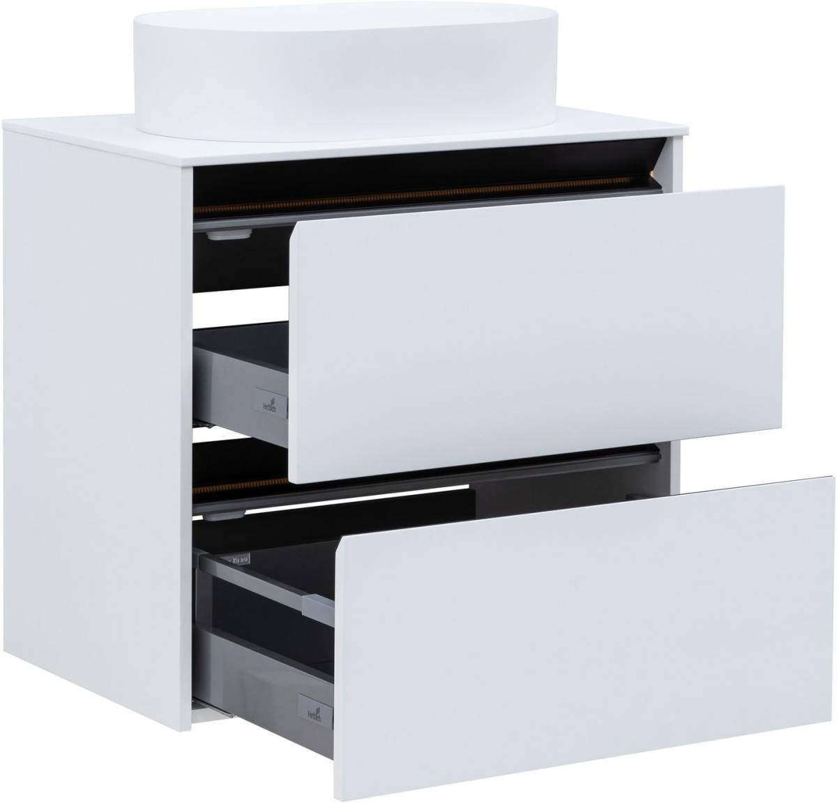 Столешницы из 70-120 см из искусственного камня в белом цвете и акрилового камня в оттенках альба, оникс и сатин предназначены для установки накладных раковин.