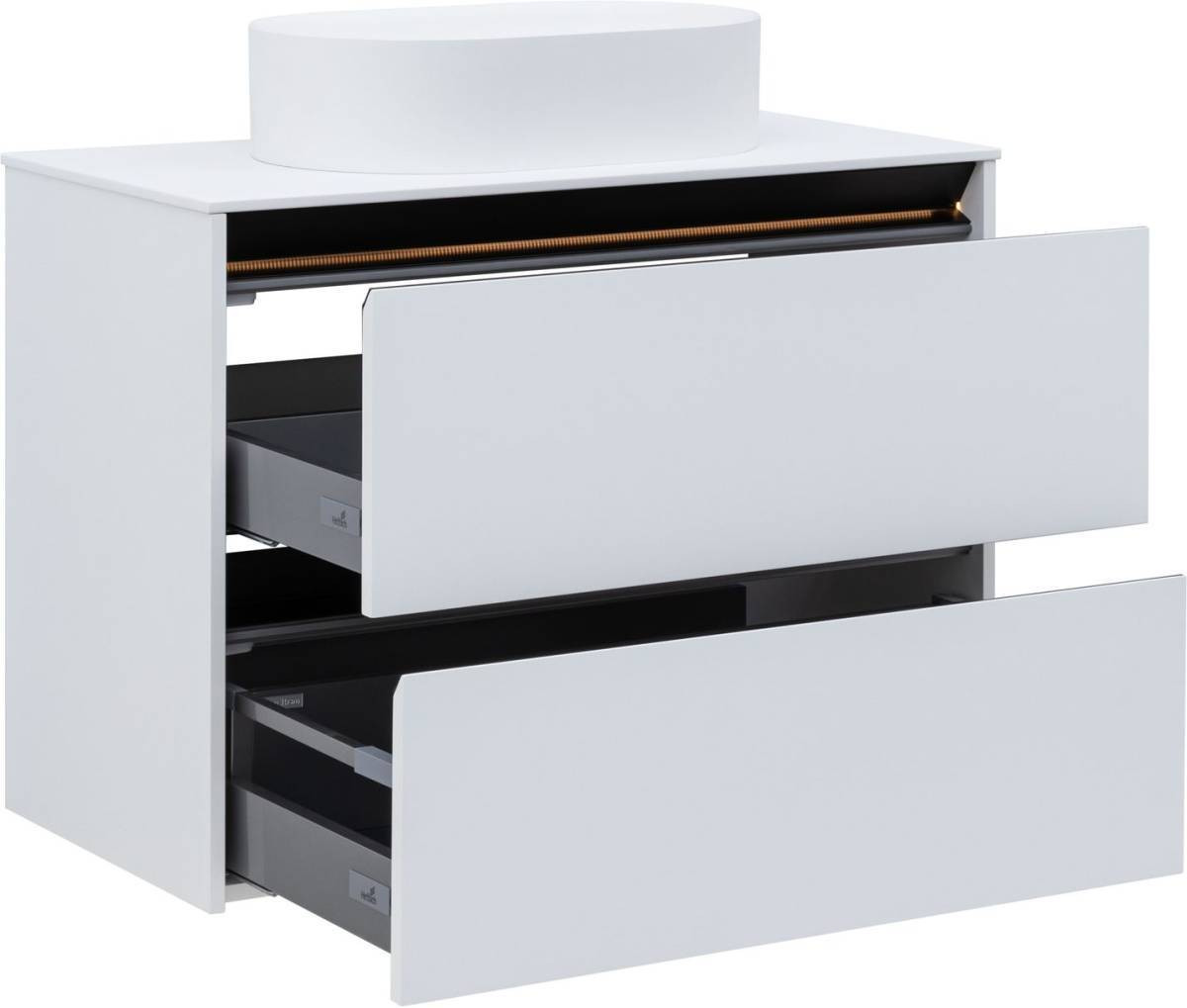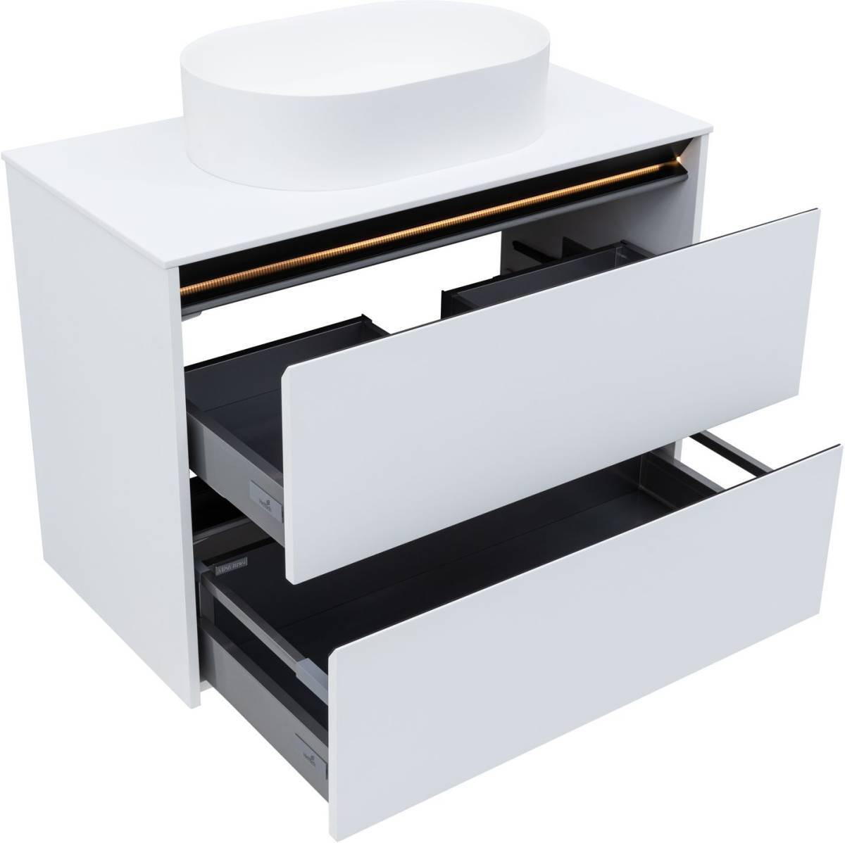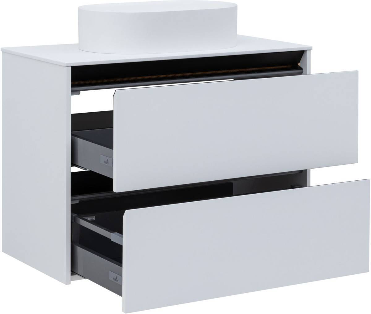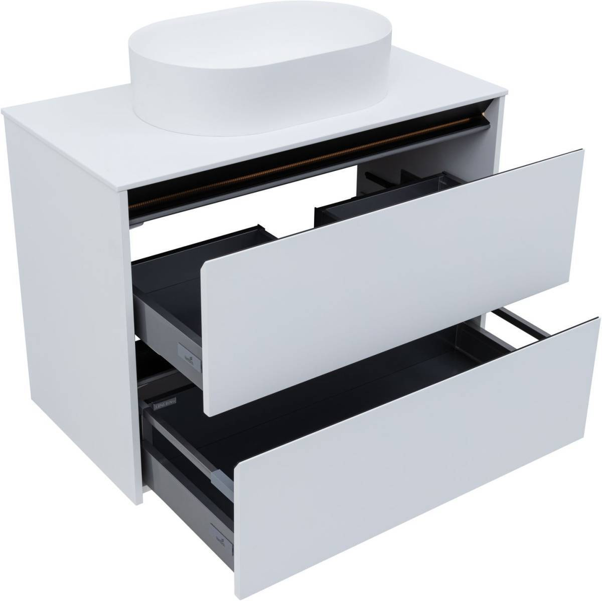 Столешницы из 70-120 см из искусственного камня в белом цвете и акрилового камня в оттенках альба, оникс и сатин предназначены для установки накладных раковин.