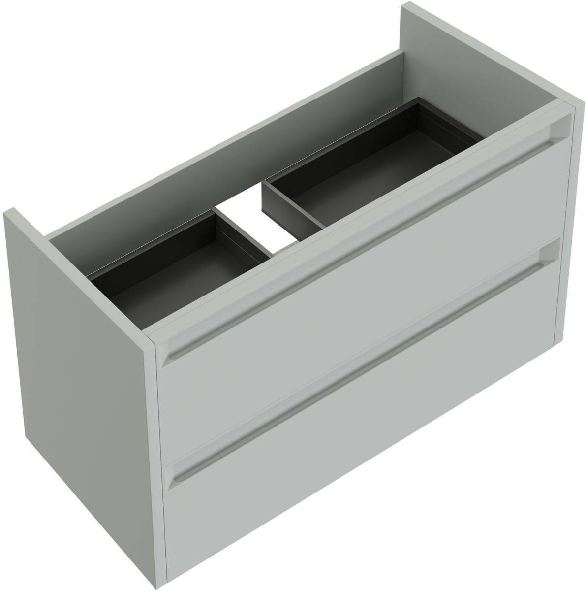 Выдвижные ящики с металлическими боковыми стенками в цвете серый металлик.