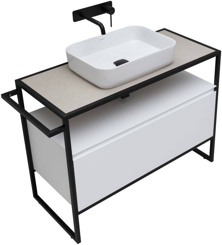 Стильные каркасы тумб и пеналов выполнены из металла, имеют брашированную поверхность с нанесением цвета путем анодирования.