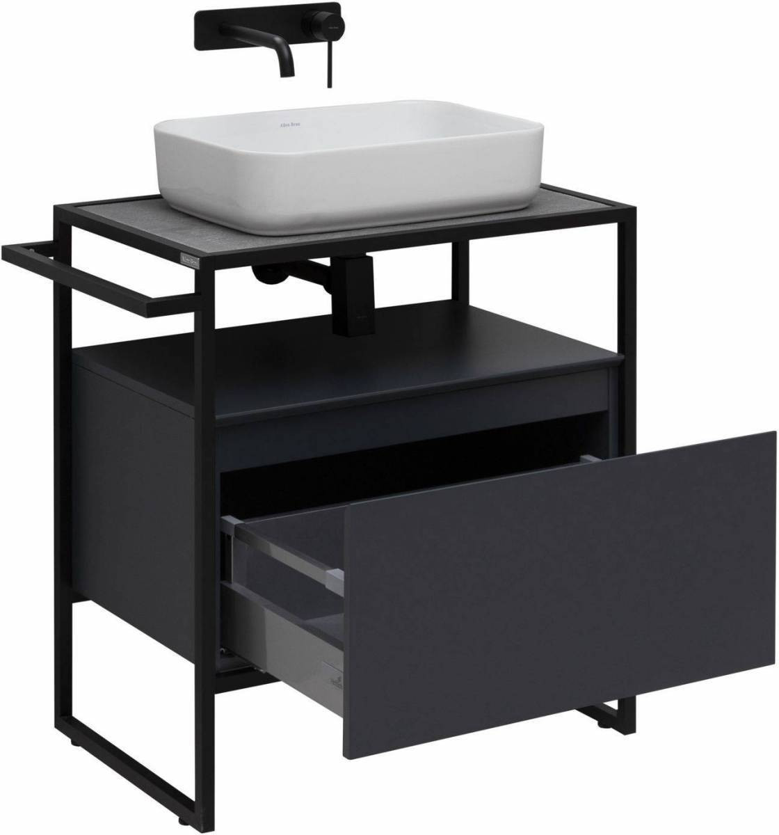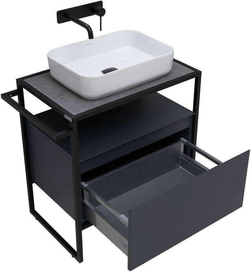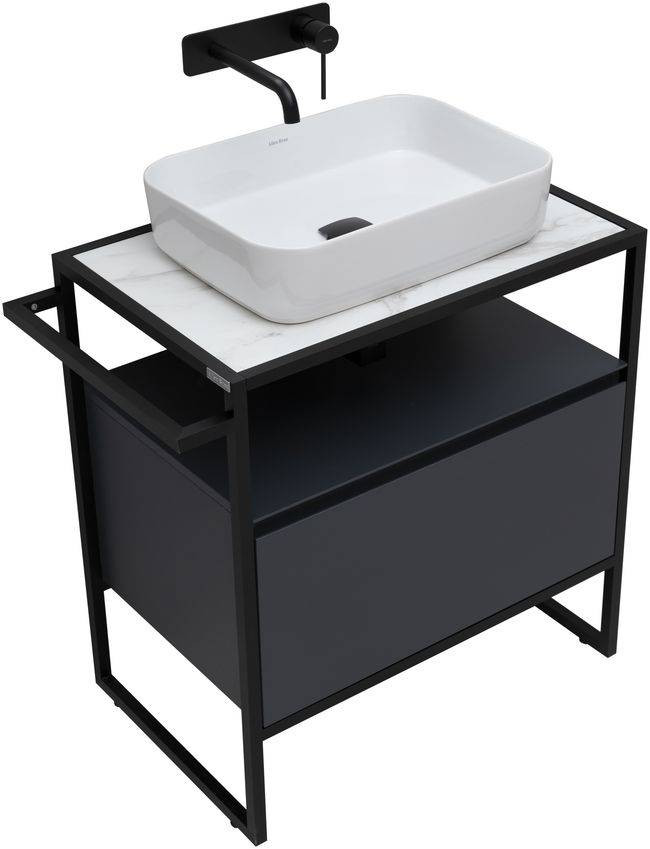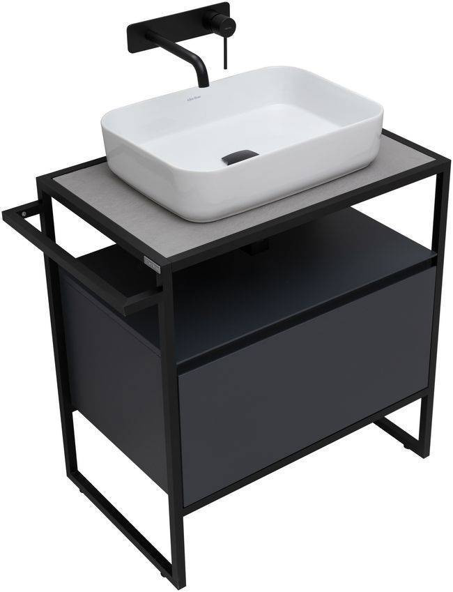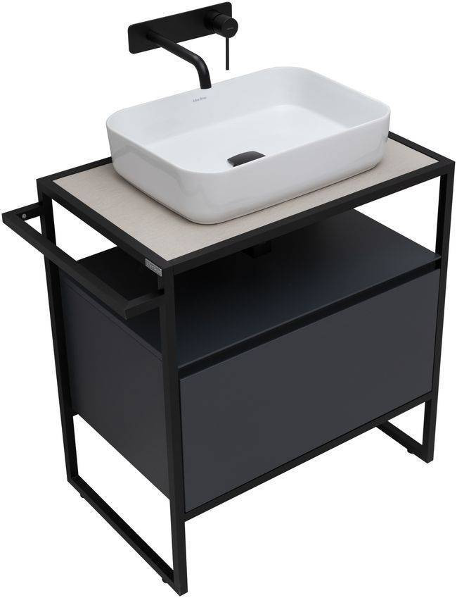 Стильные каркасы тумб и пеналов выполнены из металла, имеют брашированную поверхность с нанесением цвета путем анодирования.
