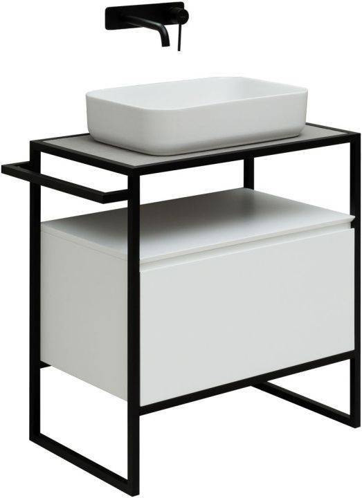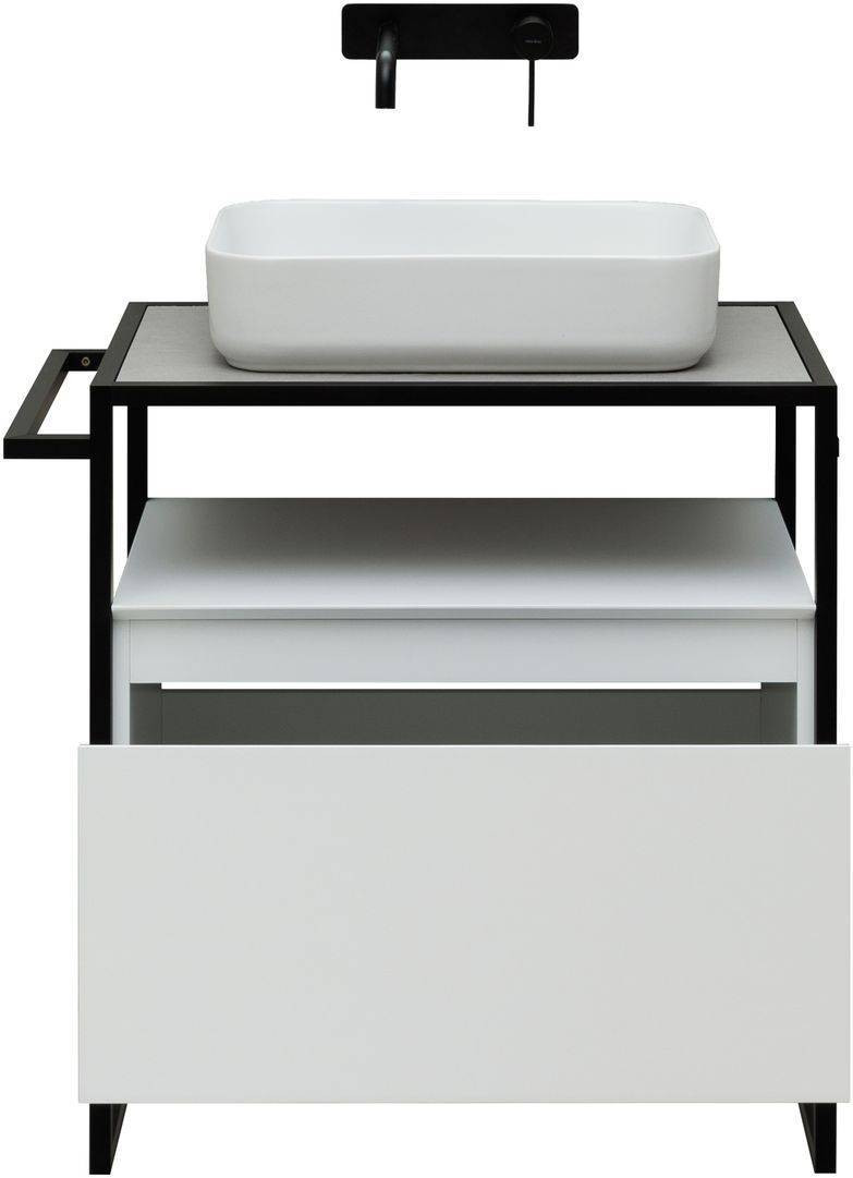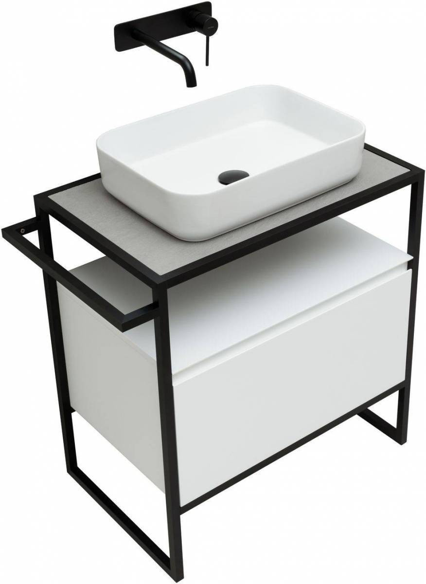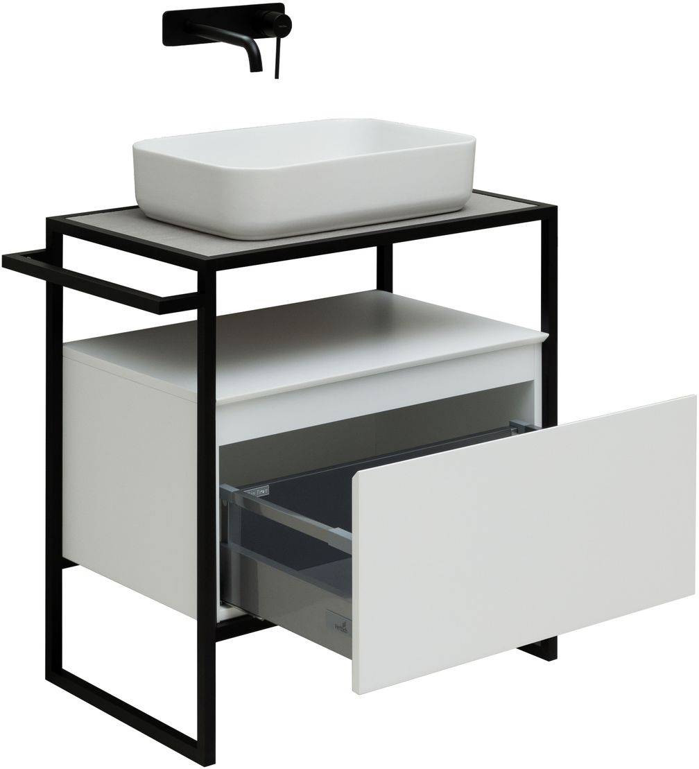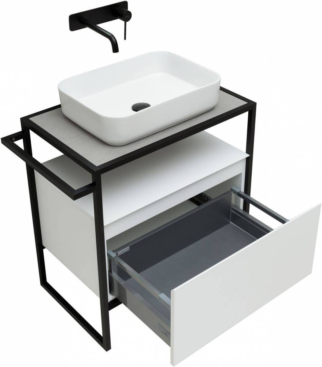 Стильные каркасы тумб и пеналов выполнены из металла, имеют брашированную поверхность с нанесением цвета путем анодирования.