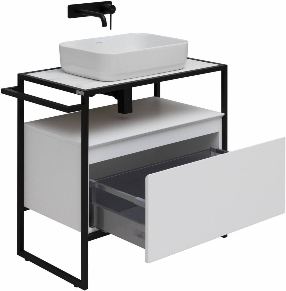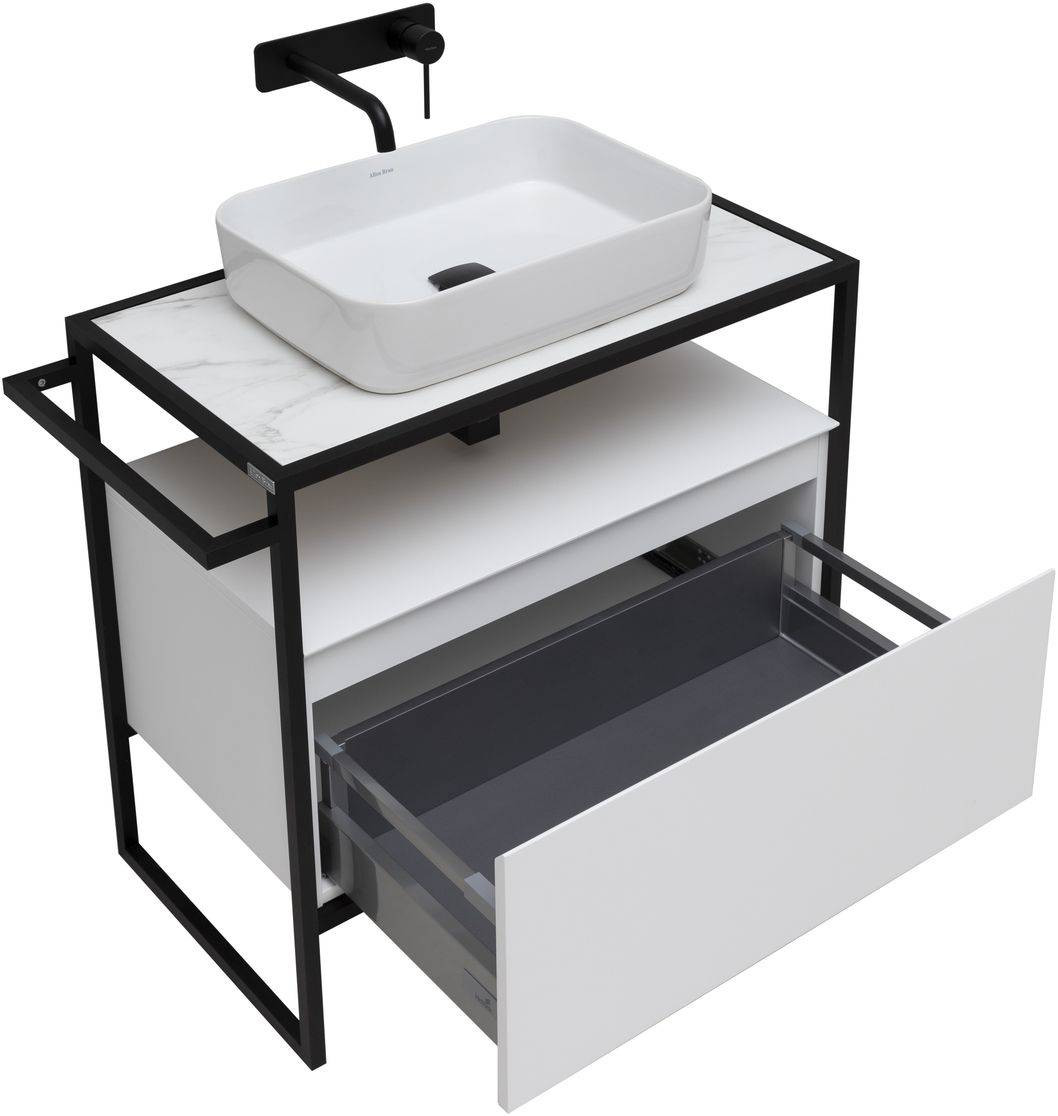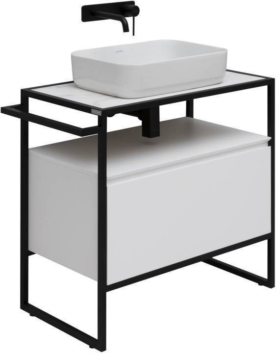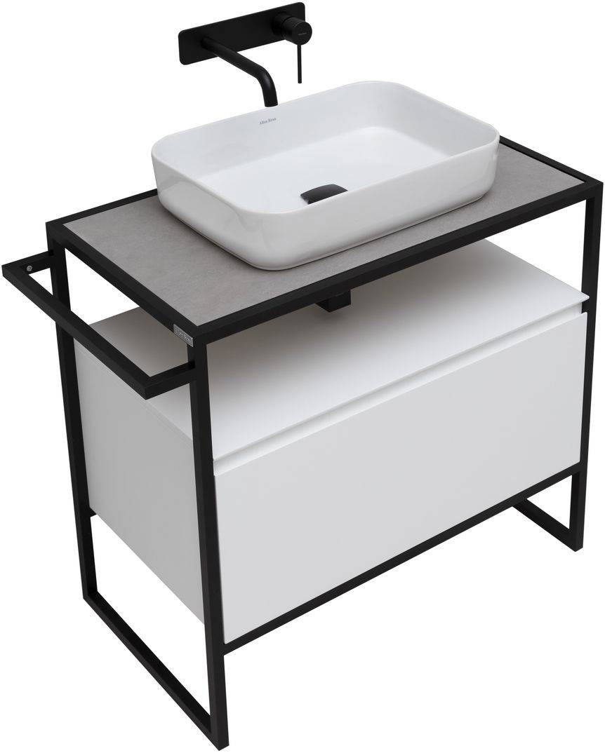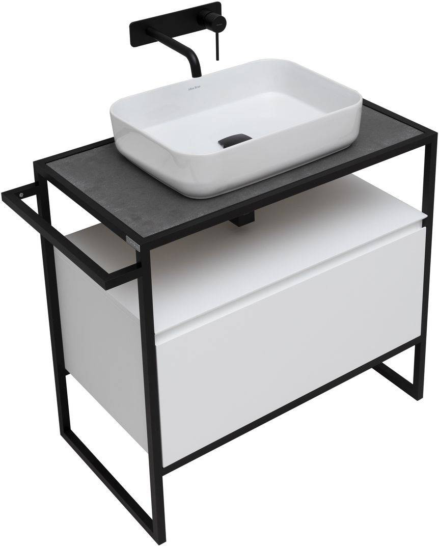 Стильные каркасы тумб и пеналов выполнены из металла, имеют брашированную поверхность с нанесением цвета путем анодирования.