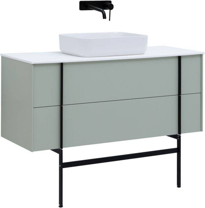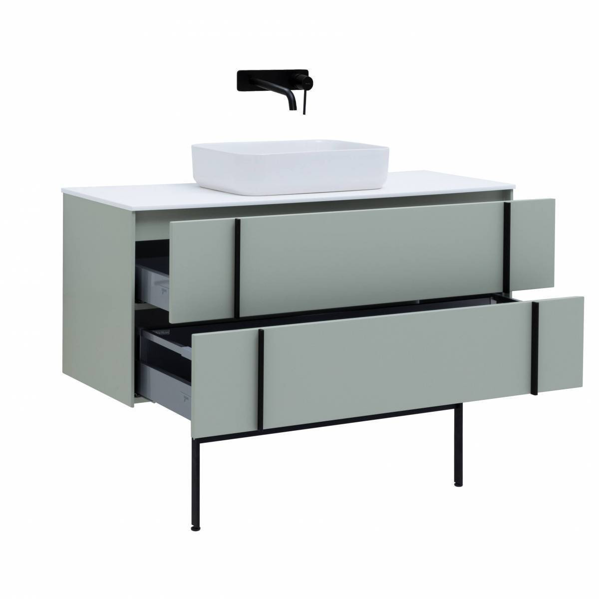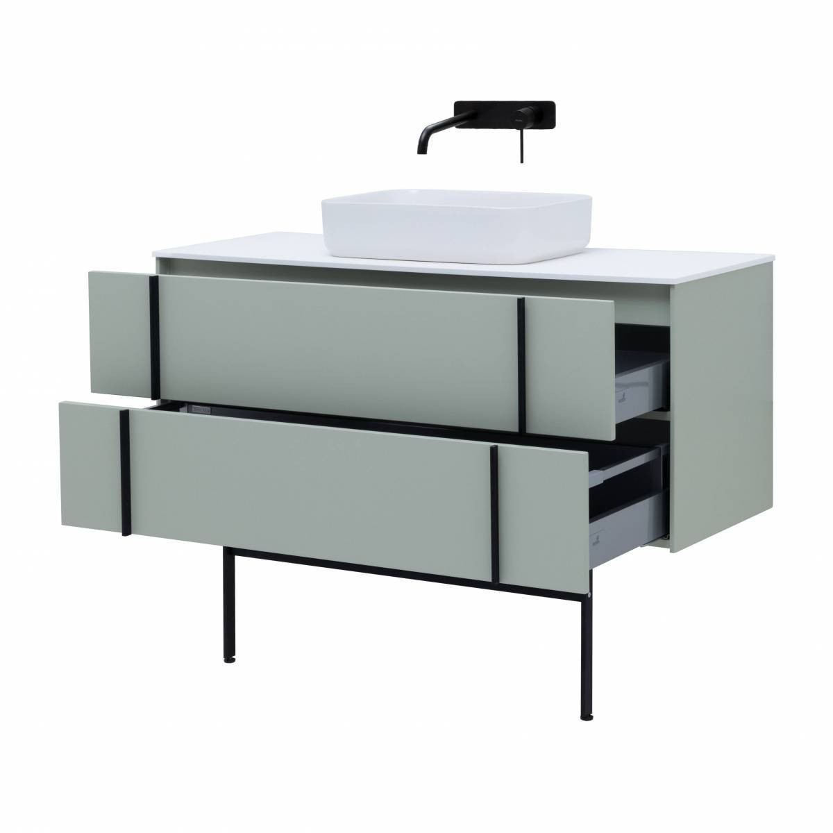 Тумбы оснащены специальной пластиковой рамой, которая надежно защищает вырез под сифон, служит органайзером и позволяет закрепить дополнительный набор контейнеров для хранения.