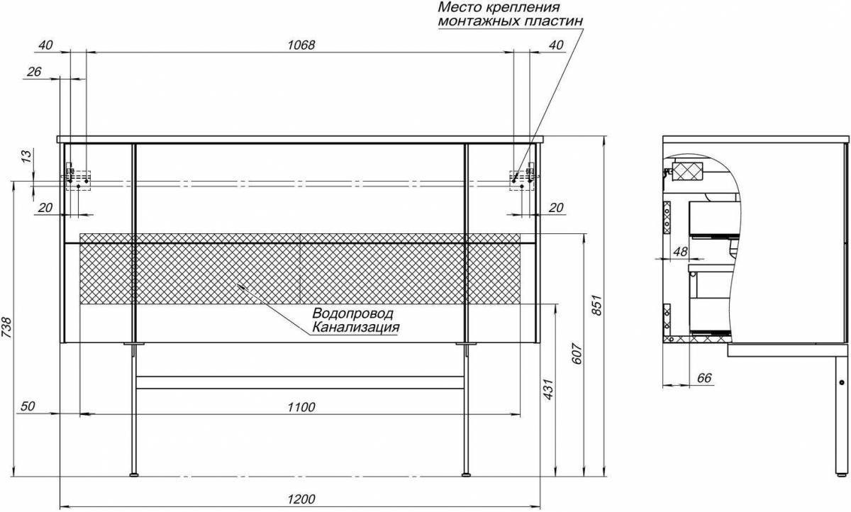 Тумба под раковину (раковина и опоры в комплект не входят)