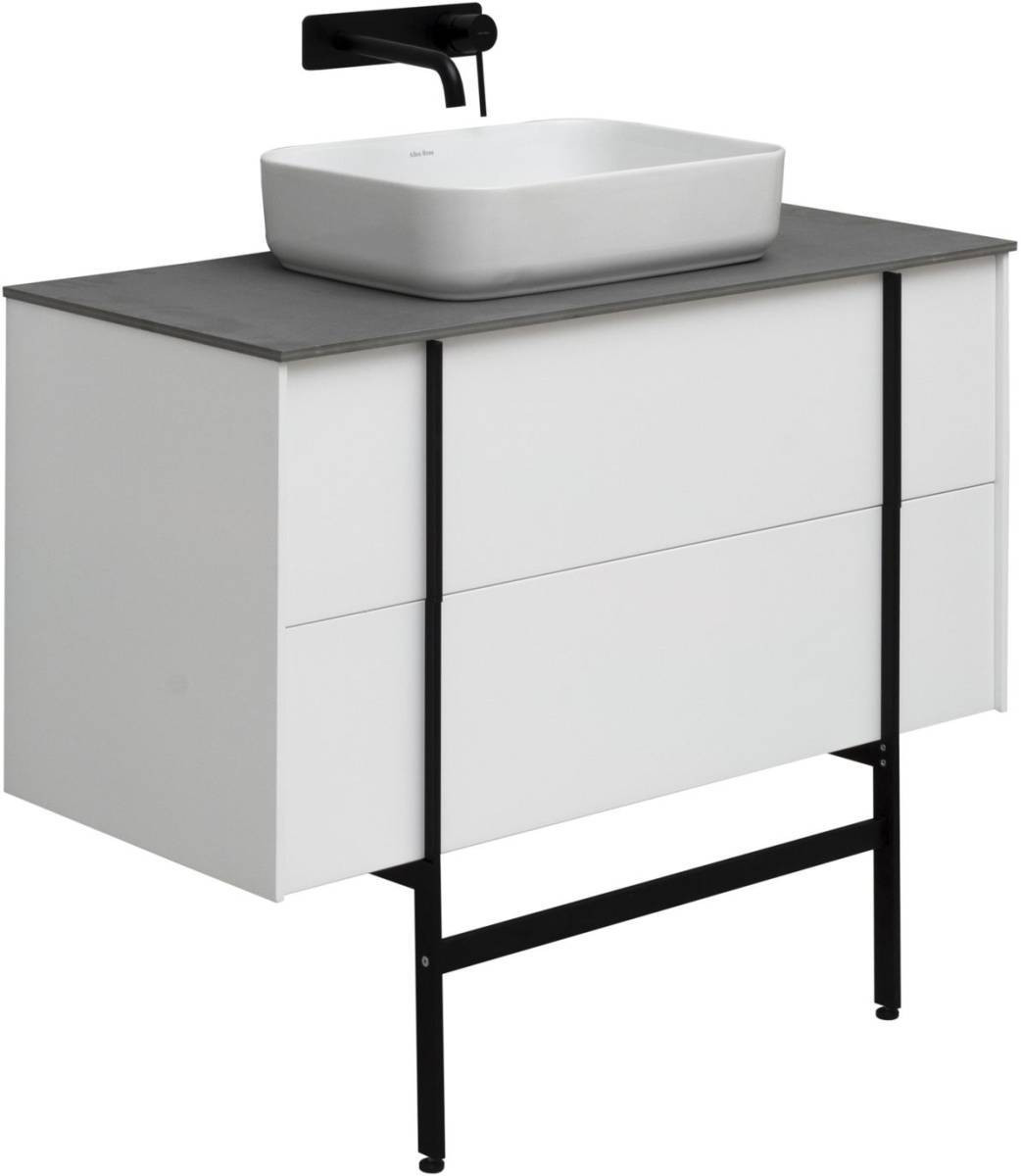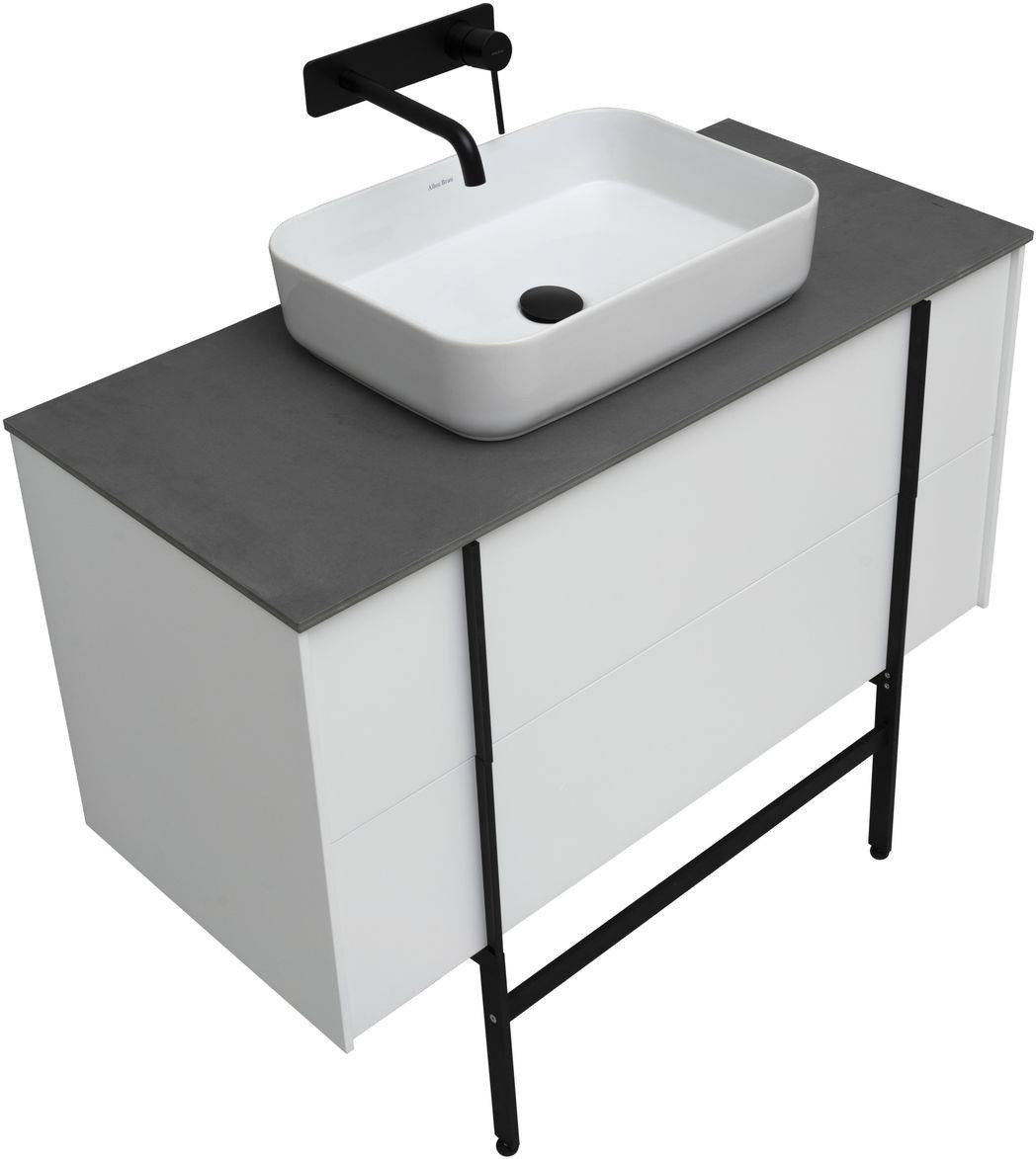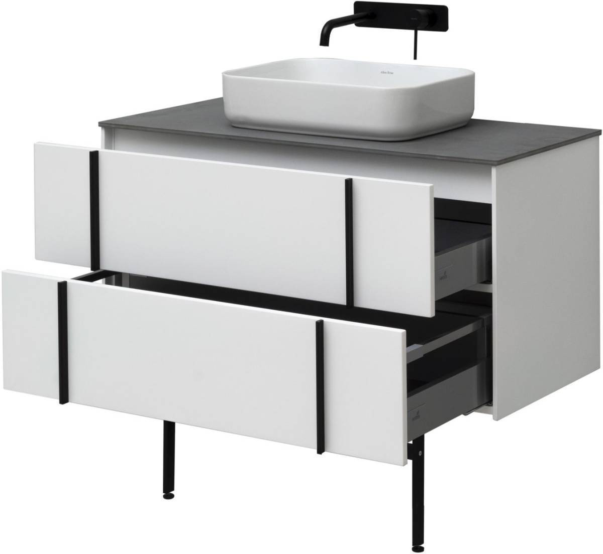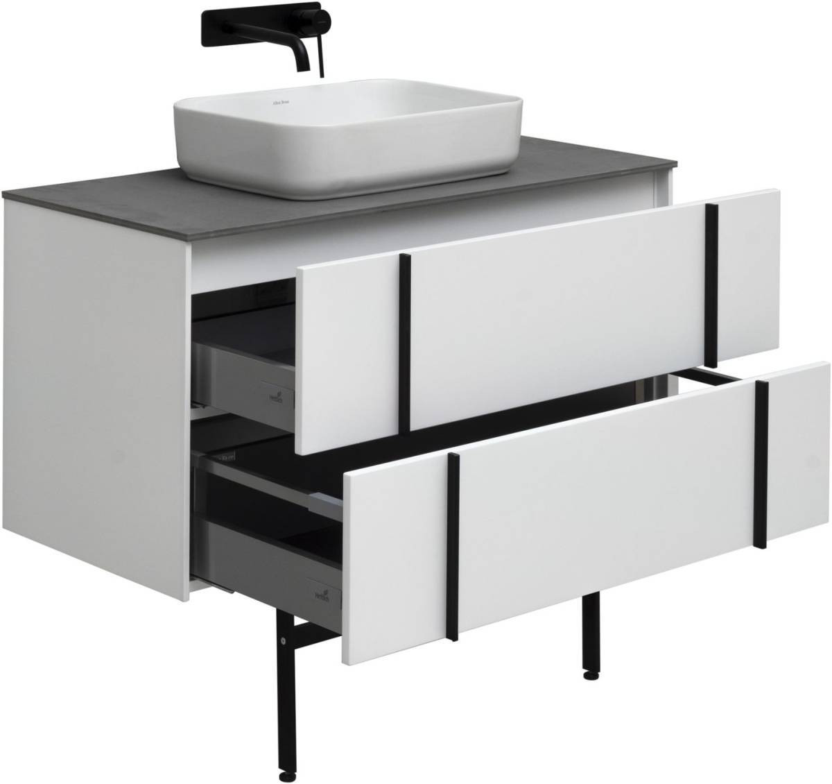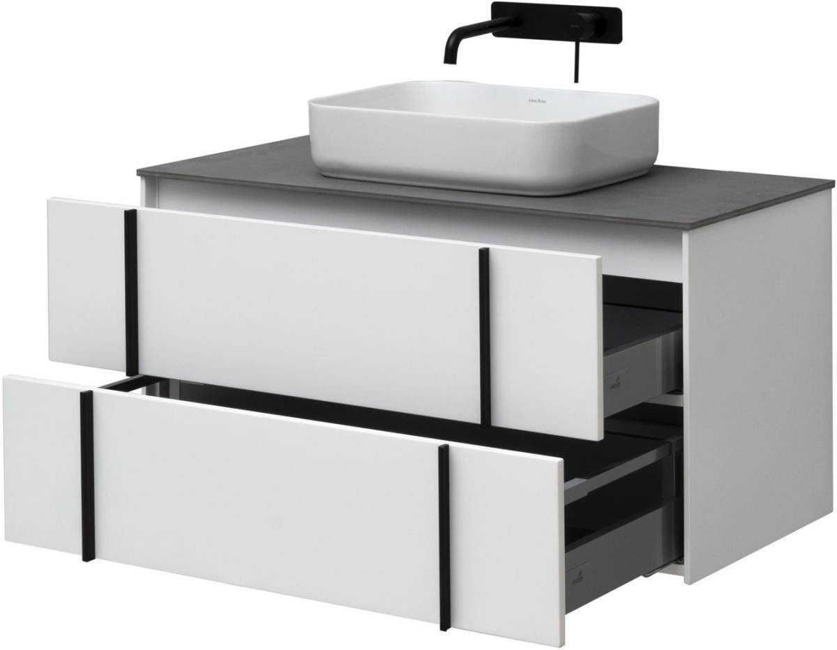 Тумбы оснащены специальной пластиковой рамой, которая надежно защищает вырез под сифон, служит органайзером и позволяет закрепить дополнительный набор контейнеров для хранения.