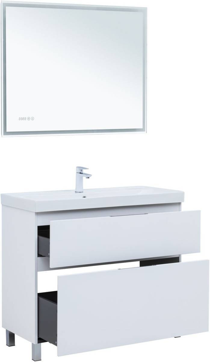 Тумба под раковину (Без раковины) Aquanet Алвита New 100 напольная, белый матовый