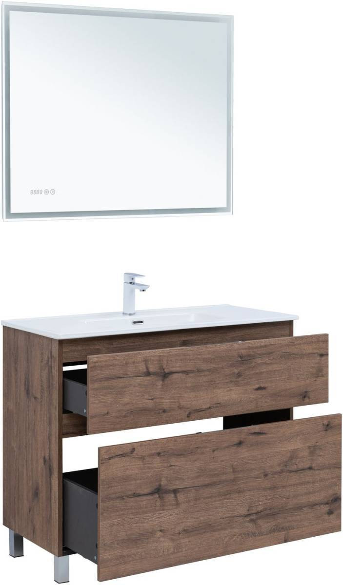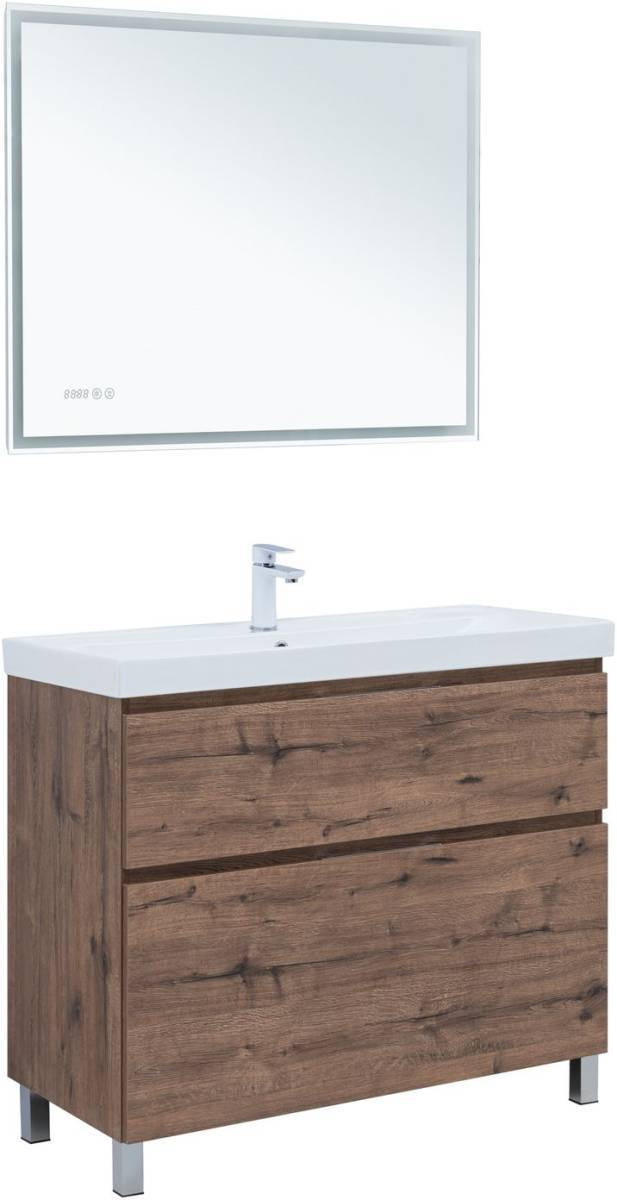 Тумба под раковину (Без раковины) Aquanet Алвита New 100 напольная, дуб веллингтон табак