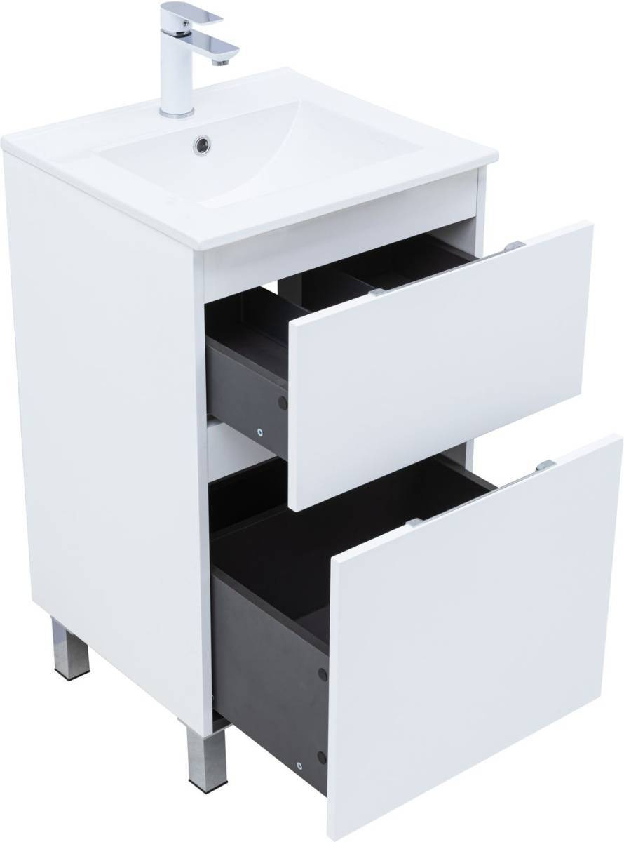 Тумба под раковину Aquanet Алвита New 50 напольная, белый матовый. Внутренние детали изготовлены из влагостойкой ЛДСП в цвете антрацит.