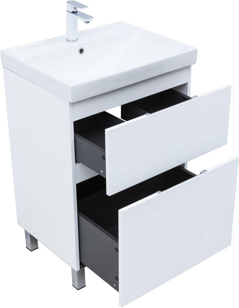 Тумба под раковину Aquanet Алвита New 60 напольная, белый матовый. Внутренние детали изготовлены из влагостойкой ЛДСП в цвете антрацит.