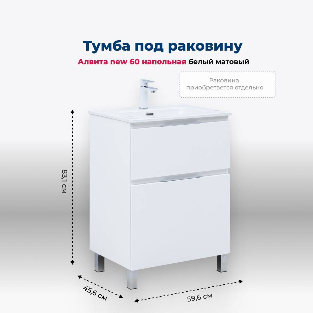 Тумба под раковину (без раковины) Aquanet Алвита New 60 напольная, белый матовый