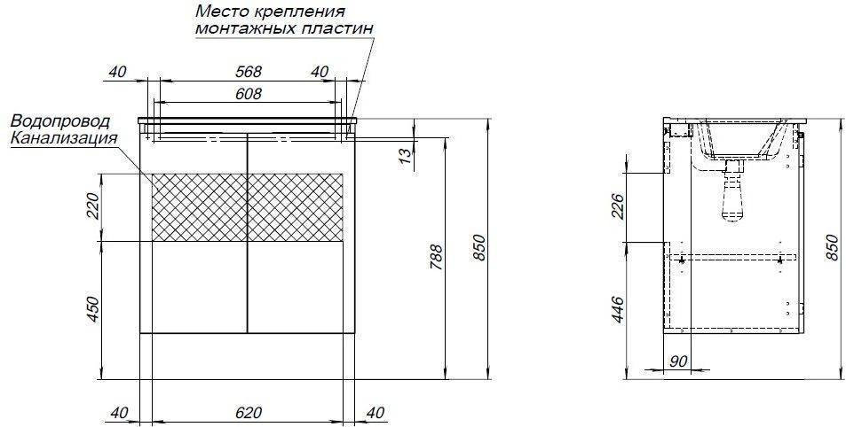 Тумба под раковину (без раковины) Aquanet Алвита New 70 2 дверцы, антрацит