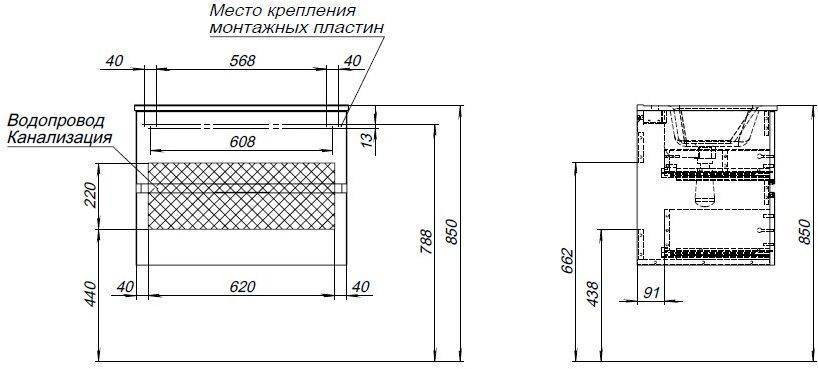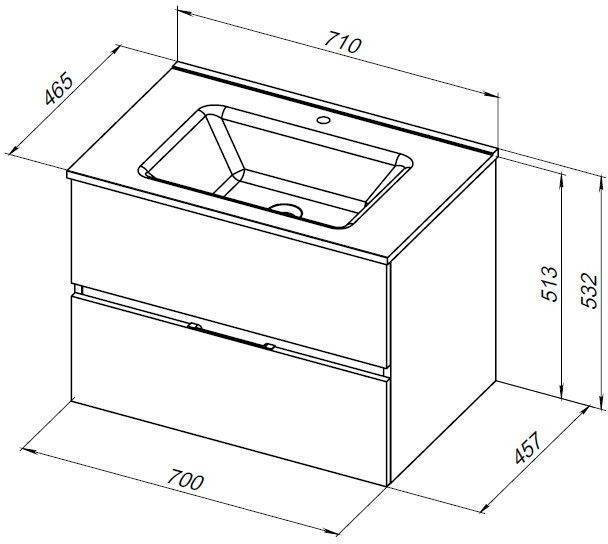 Тумба под раковину (без раковины) Aquanet Алвита New 70 2 ящика, серый