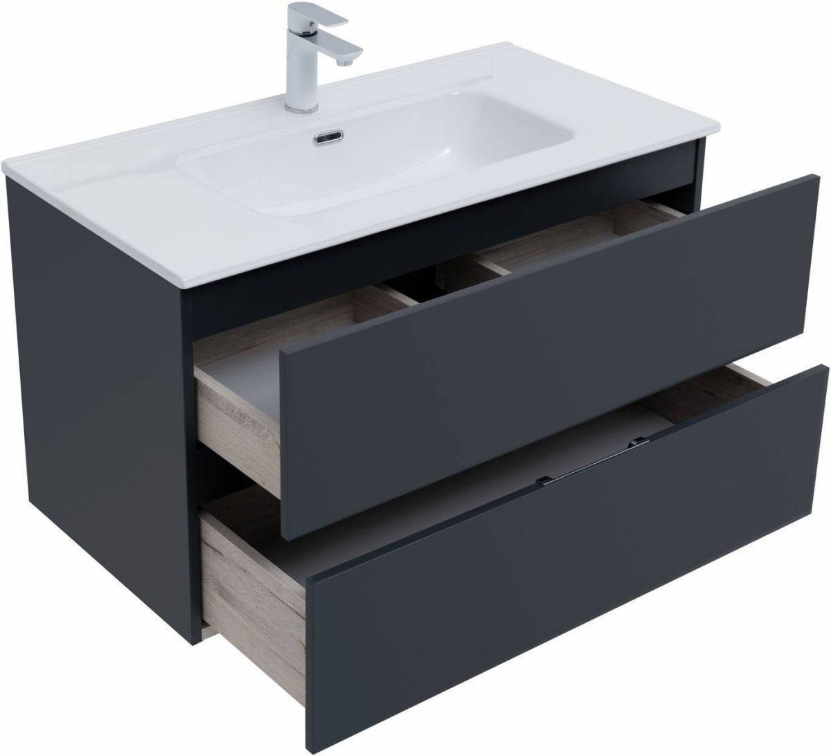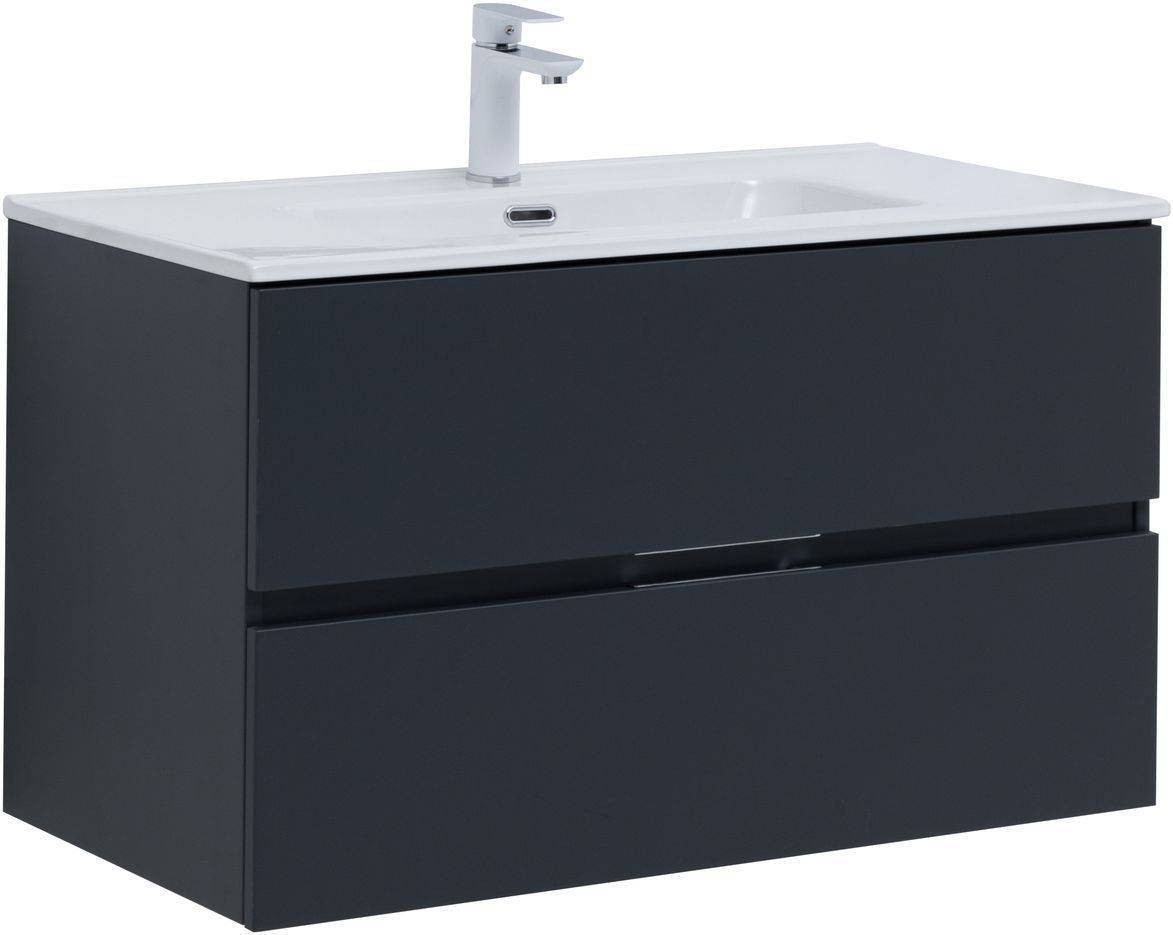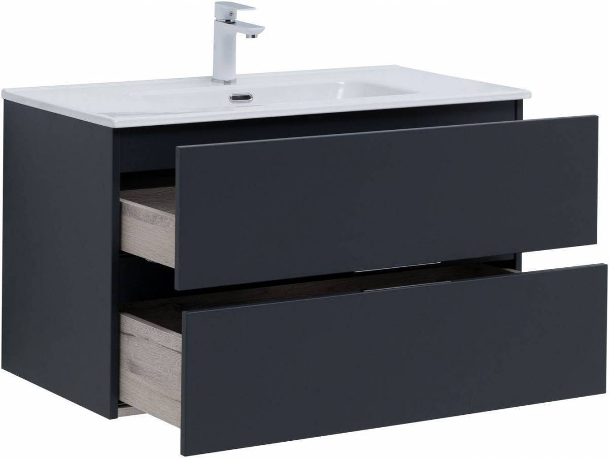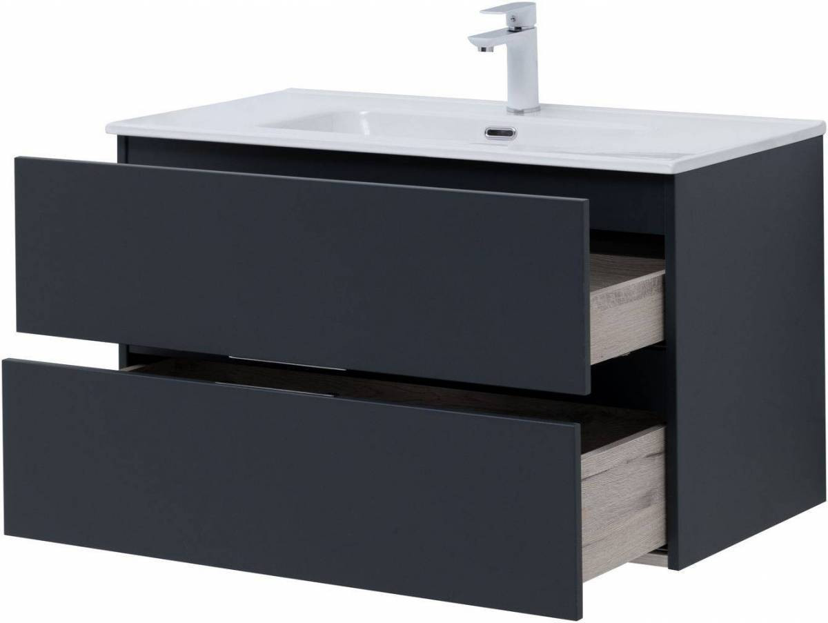 Тумба под раковину (без раковины) Aquanet Алвита New 90 2 ящика, антрацит