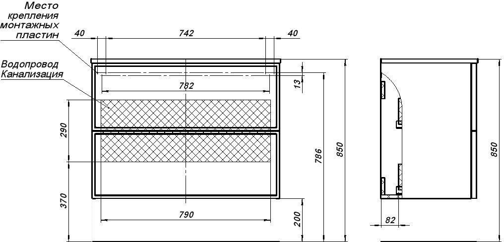 В столешнице Арт предусмотрены 2 отверстия: под слив раковины и под смеситель с установкой на столешницу. Расположение смесителя – справа от чаши раковины
