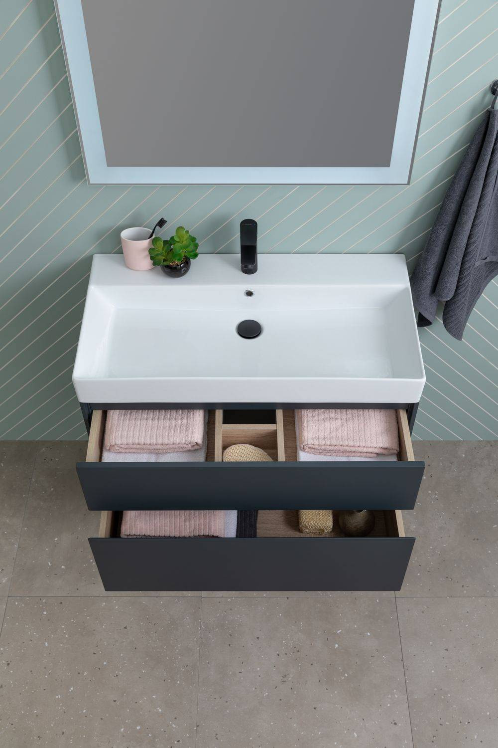 Тумба под раковину (без раковины) Aquanet Бруклин 85 антрацит матовый