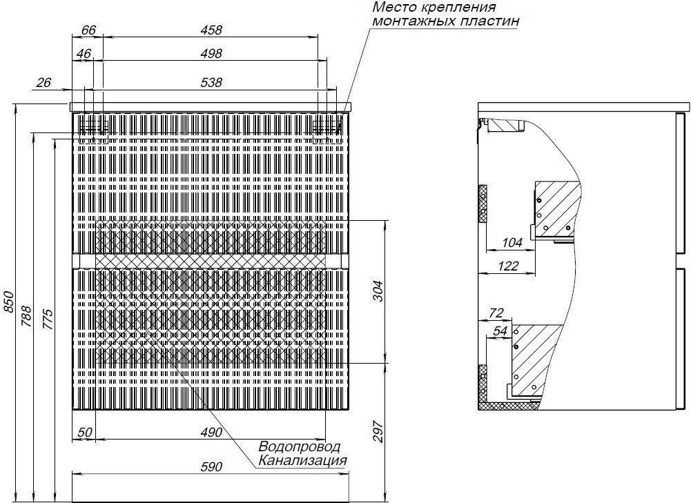 Внутренние детали - влагостойкая ЛДСП, цвет белый.