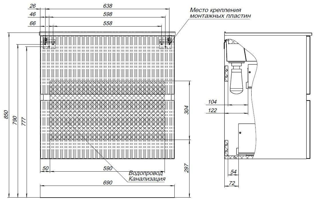 Внутренние детали - влагостойкая ЛДСП, цвет белый.