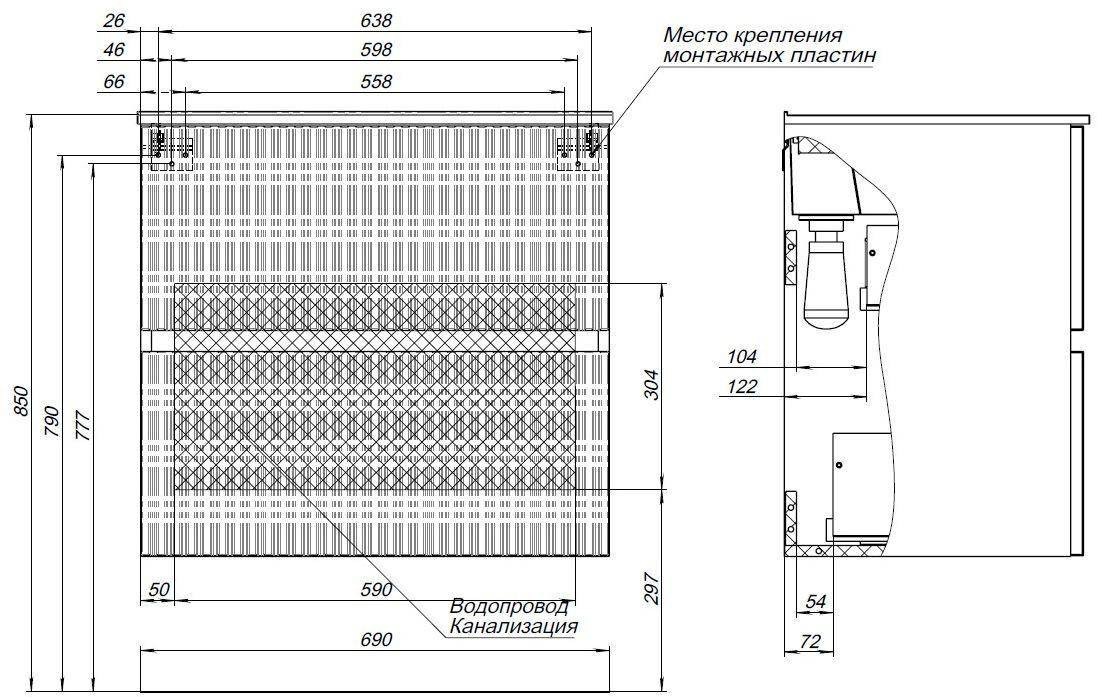 На выбор предоставляется мебельная раковина, либо столешница. При выборе столешницы потребуется выбрать к ней накладную раковину.