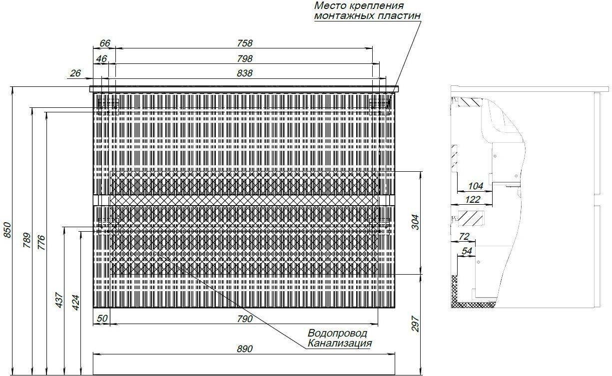 На выбор предоставляется мебельная раковина, либо столешница. При выборе столешницы потребуется выбрать к ней накладную раковину.
