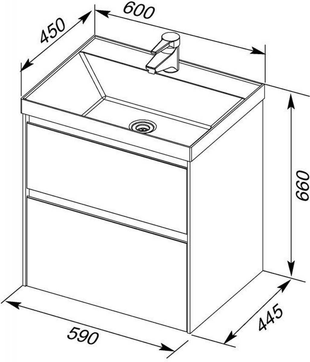 Производители позаботились о деталях. Ящики лишены выступающих деталей, ручки интегрированы в фасад. Тумбу шириной 60 см можно из подвесного элемента преобразовать в напольный, просто докупив универсальные ножки. Ящики тумб оснащены направляющими Hettich Quadro c плавным закрыванием, более известным нам как доводчик. Комплект тумбе составит раковина из литьевого мрамора «Орлеан», относящаяся к числу накладных моделей, которая внешне выглядит как единое целое с тумбой.