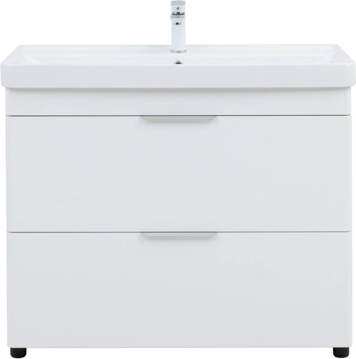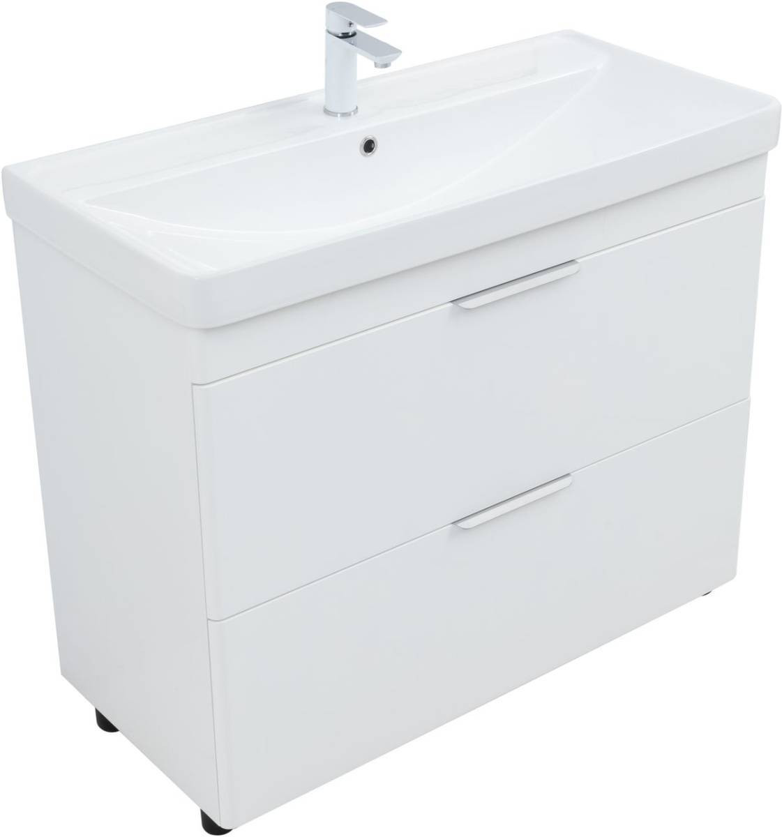 Тумба под раковину (Без раковины) Aquanet Ирис New 100 напольная, белый глянец