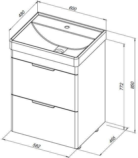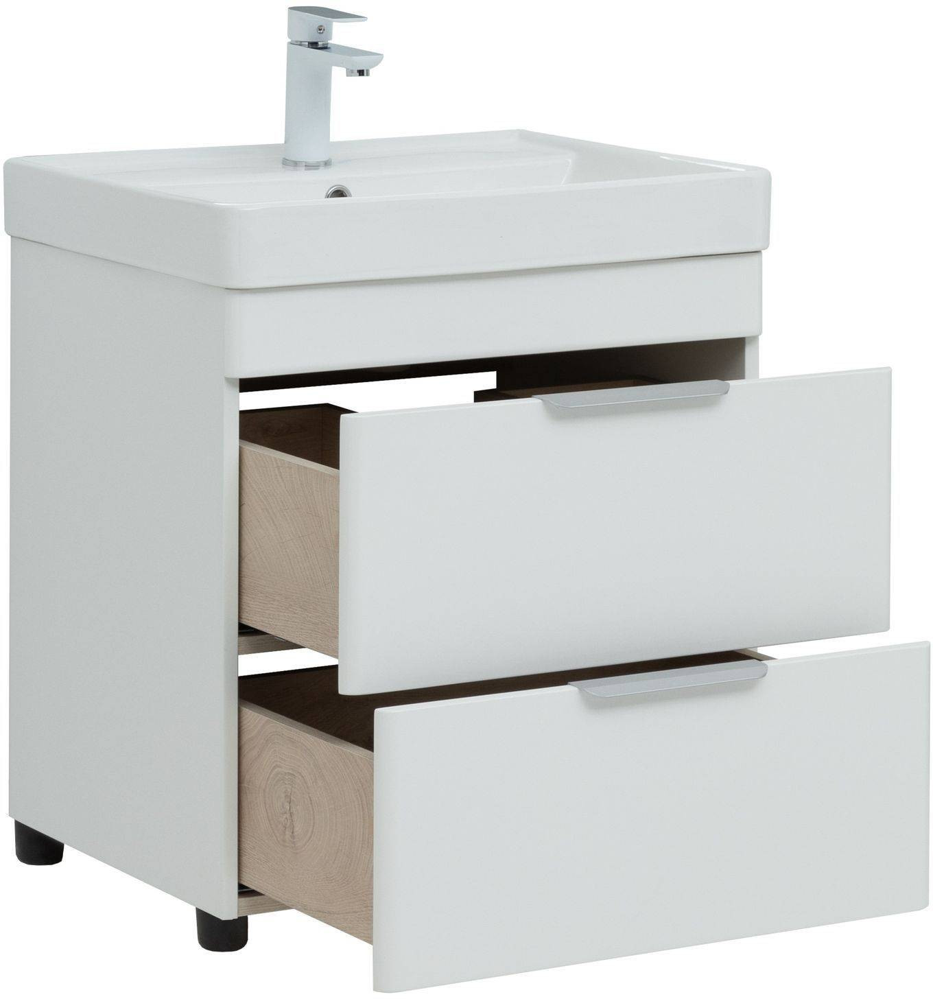 Тумба под раковину (без раковины) Aquanet Ирис new 60 белый глянец (2 ящика)