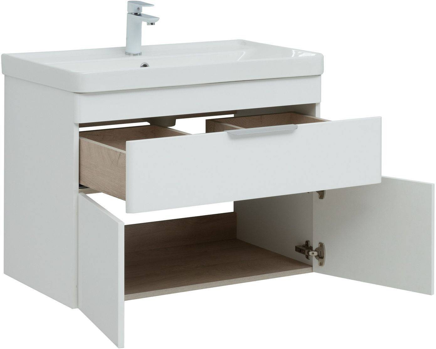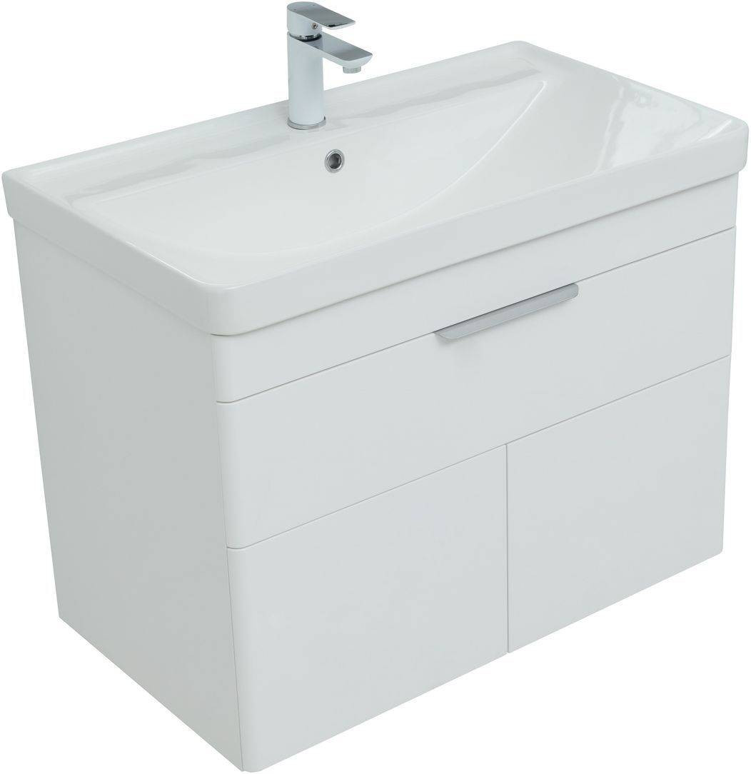 Тумба под раковину (без раковины) Aquanet Ирис new 80 белый глянец (1 ящик, 2 дверцы)